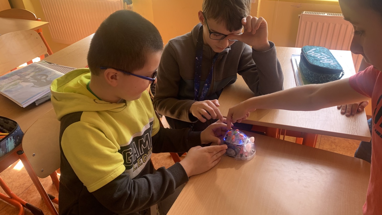 Žáci z III.B se na chvíli stali malými programátory, seznámili se totiž s novou programovatelnou robotickou pomůckou, tzv. Blue-botem. Děti si vyzkoušely Blue-bota ovládat, programovat ho podle zadaných šifer, plánovaly trasy a dokonce uspořádaly i minisoutěž v blokovém programování. Hravou formou jsme tak pracovali na rozvoji logického myšlení, prostorové představivosti a plánovacích schopností. Děti se už teď těší na další využití Blue-bota, například v hodinách češkého jazyka nebo matematiky. Mgr. Jaroslava Šibravová