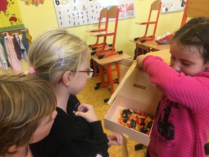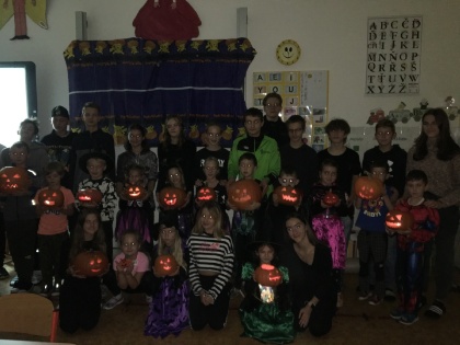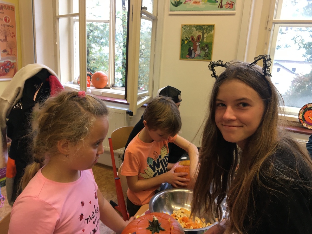 Začátkem října jsme se seznámili se svými patrony z VIII.A a hned jsme se domluvili na společném projektovém dni, moc jsme se těšili a dnes se konečně dočkali. Osmáci nám pomohli vyřezat dýně a my dlabali a dlabali, ale někde byli i na to dlabání osmáci potřeba. Vše se nám skvěle vydařilo, osmákům patří velké díky nejen za pomoc, ale i odměny a dobroty. Nakonec jsme si ještě společně zacvičili. Čekání na projektový den jsme si zpestřovali učením, při matematice jsme si hráli s kostkami, jezdili autobusem, tvořili na geodesce, luštili křížovky, skládali slova, začali jsme číst z čítanky, slavili s našimi spolužáky a často chodili ven. Mgr. Zuzana Králiková
