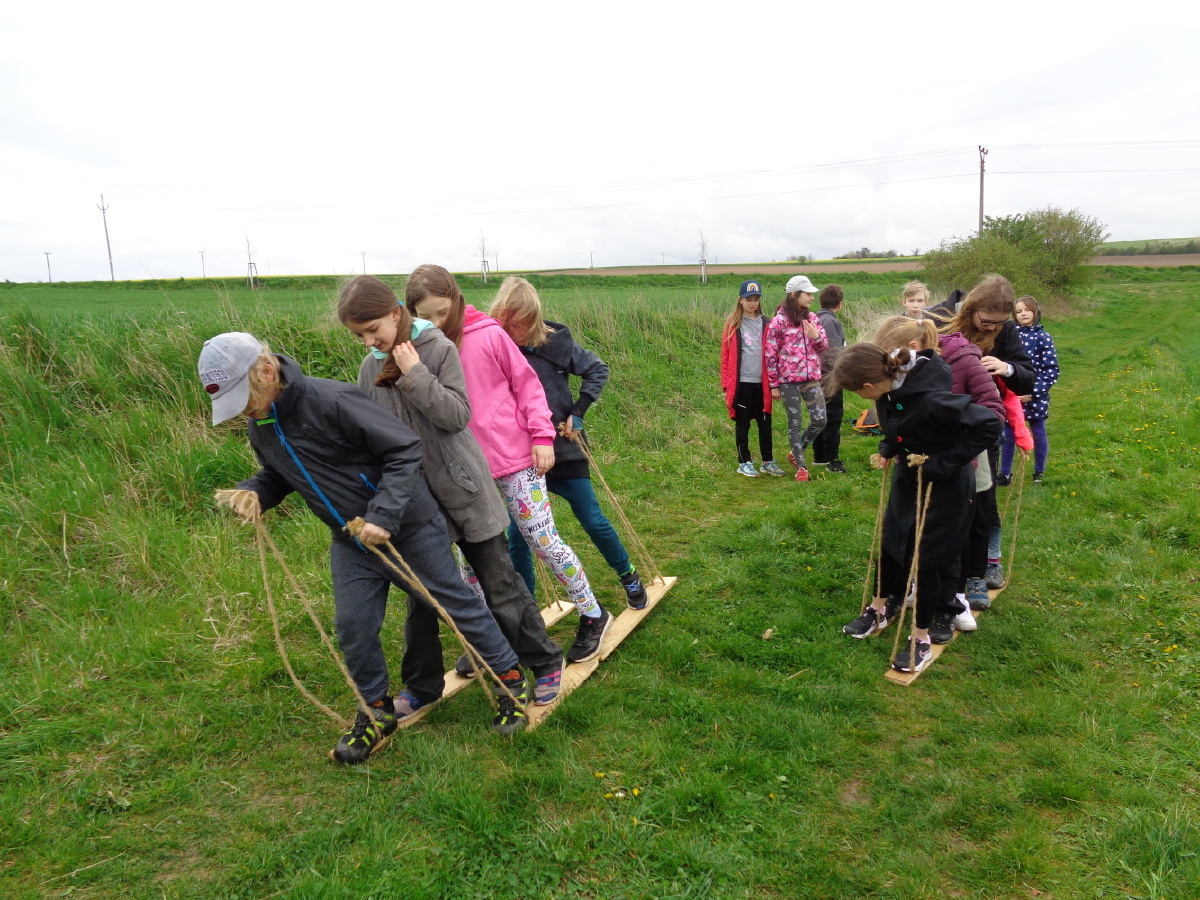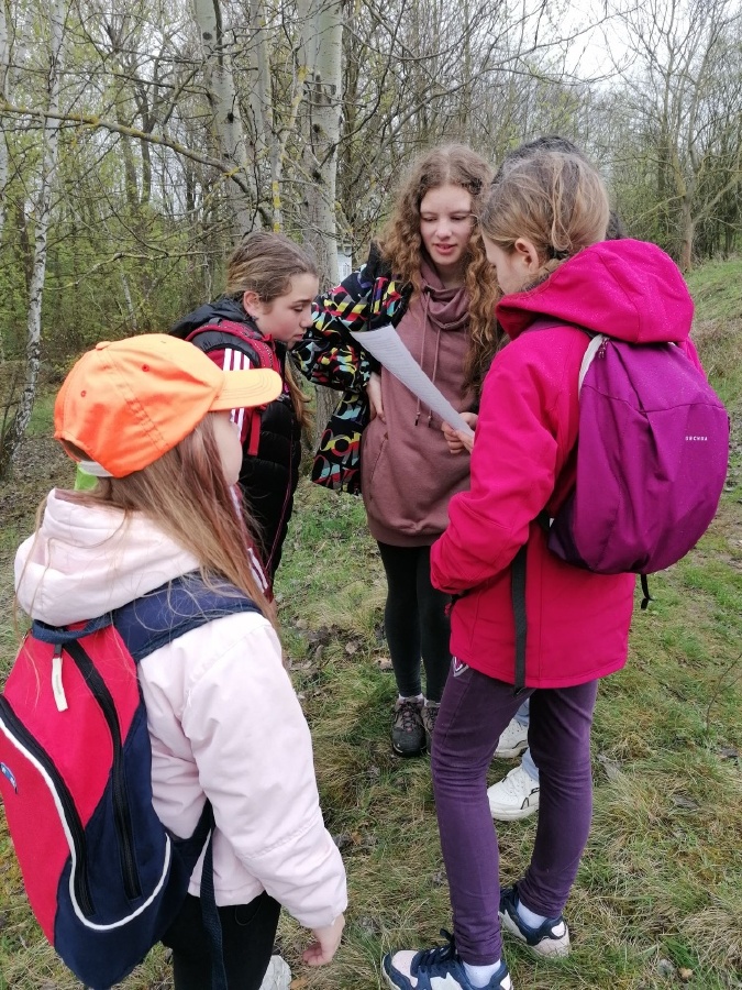 Také pro žáky 5. a 6.ročníku byla na Den Země připravená několikakilometrová trasa po okolí Kutné Hiory. Děti ji absolvovaly v pětičlenných týmech, měly zápisové lístky, do kterých jim asistenti z řad deváťáků zapisovali získané body za splněné úkoly. Posledním stanovištěm bylo divadélko na Bylance, kde bylo možné opéci si špekáčky. Tuto možnost i přes nevlídné počasí řada z nás využila.