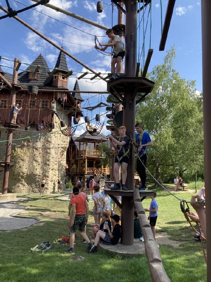 Týden od 12. června prožili všichni naši deváťáci společně v Outdoor Resortu Březová, v největším zážitkovém parku v ČR. Na pobyty sem směřujeme opakovaně, můžeme si tady vyzkoušet řadu adrenalinových aktivit, jedná se skutečně o nejvybavenější resort v oblasti dětské rekreace. Vzhledem k tomu, že jeli všichni deváťáci společně, byl pobyt lehce adrenalinový i pro doprovázející pedagogické pracovníky...Nicméně po náročném týdnu se všichni spokojení vraceli domů, předpokládáme, že budou mít dlouho na co vzpomínat...
