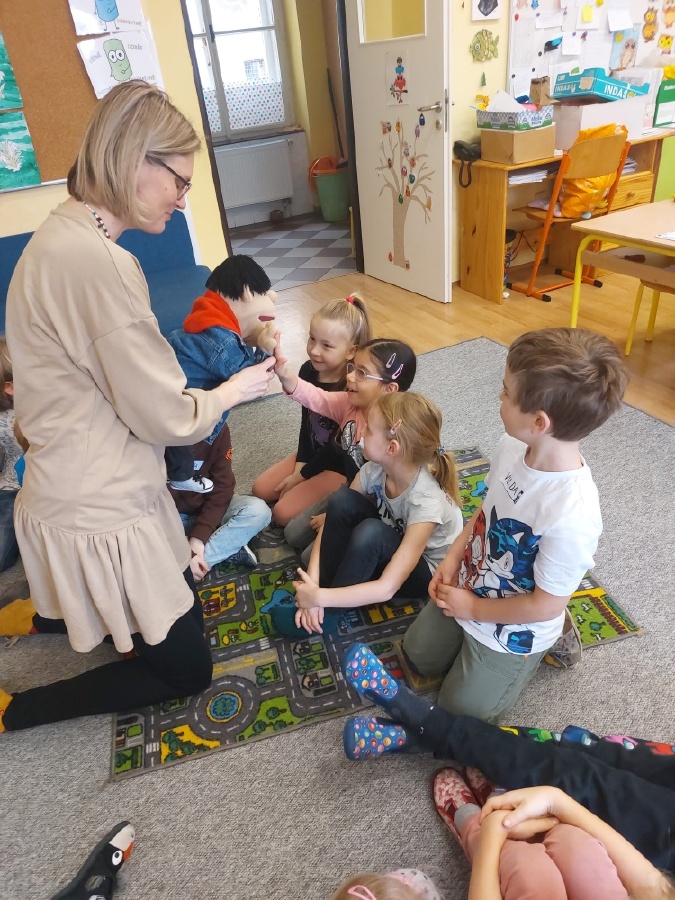 Navštívil nás také náš kamarád Ludvík. Nejprve se s dětmi pozdravil – s někým si plácnul, s někým si řekl ahoj, s někým se objal. A poté si s dětmi povídal o kamarádství. Děti debatovaly o tom, jaké chování k druhým je správné. Zahrály si hry, při kterých se učily všímat si druhých, zazpívaly si písničku o přátelství. Na konci Ludvíkovi slíbily, že se k sobě budou chovat hezky a kamarádům pomáhat.. A protože my v I.D jsme všichni dobří kamarádi, splnit tyto sliby nám půjde hravě. Mgr Miroslava Falgeová