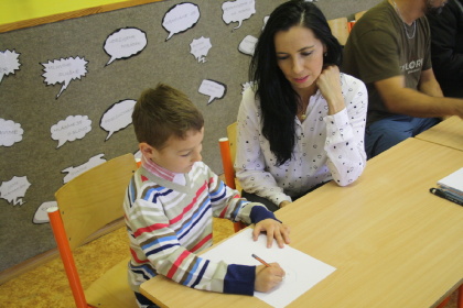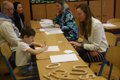 Děkujeme rodičům, že ochotně našim fotografům pózovali, děkujeme našim pohádkovým postavám, že se celé odpoledne vzorně budoucím školákům věnovaly a doprovázely je, děkujeme fotografům, že pro nás celý zápis krásně zdokumentovali. Děkujeme paní kolegyni Krupkové, která pohádky řadu let připravovala a teď už předává štafetu dál. Na nové školáky se v září už moc těšíme. Na závěr jedna hádanka - co mají téměř všechny fotografie společné? Všichni se na nich usmívají....
