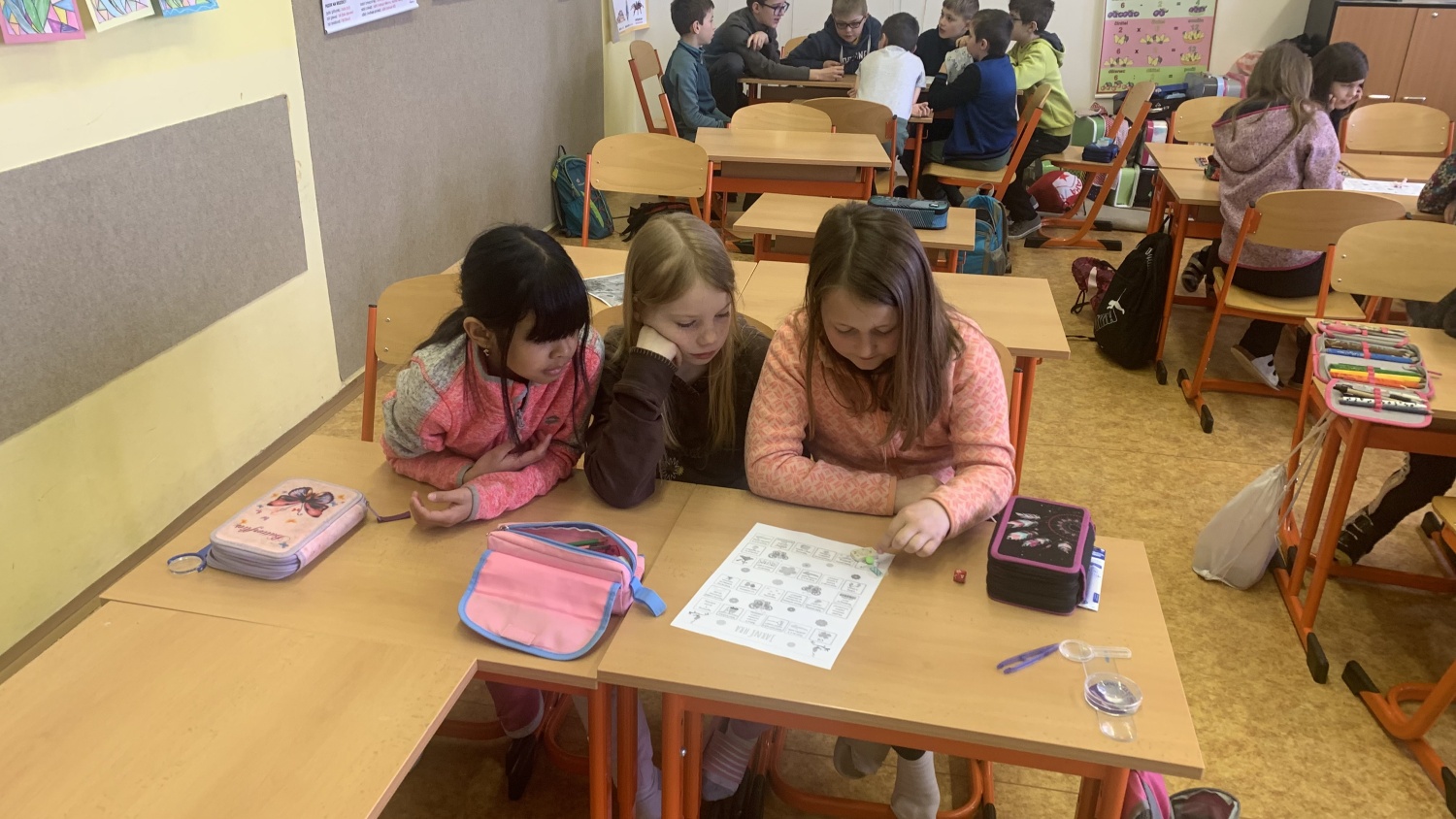 Projektový den, středu 19.4., zahájily děti ve III. B jarní deskovou hrou v libovolných skupinách, při které si hravou formou zopakovaly nejen učivo prvouky, ale také si zacvičily nebo zazpívaly a řešily úkoly týkající se přírodních zajímavostí. Poté pracovaly s lupou či mikroskopy a žasly nad malými detaily, které na první pohled naše oko nepostřehne. Další částí projektu byla vycházka, kde děti plnily úkoly zakreslené v pracovním listu a vyhledávaly různé přírodniny. Na závěr si v přírodě zahrály pátrací hru a vyřešily jarní kvíz. Zkrátka si to všichni moc užily a dokonce nám přálo i počasí. Mgr. Jaroslava Šibravová