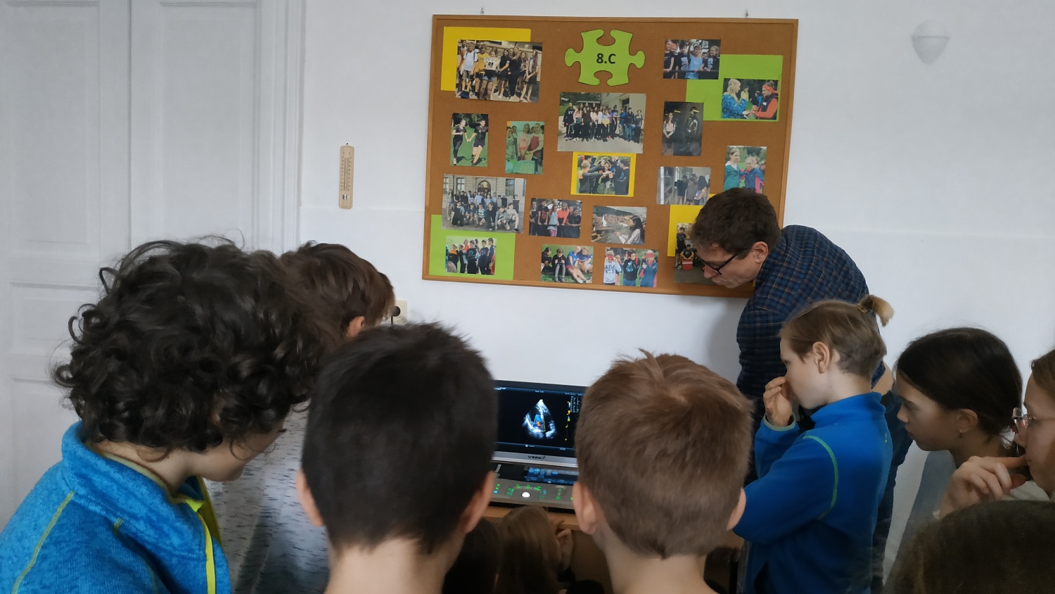 Do hodiny předmětu Člověk a jeho svět v V. A zavítal pan Mgr. Jan Vopěnka, tatínek jednoho z dětí, přinesl s sebou ultzrazvukový přístroj a vysvětlil dětem jeho fungování a využití. Panu Vopěnkovi děkujeme za tuto velice zajímavou zkušenost. Mgr. Iva Klaudová