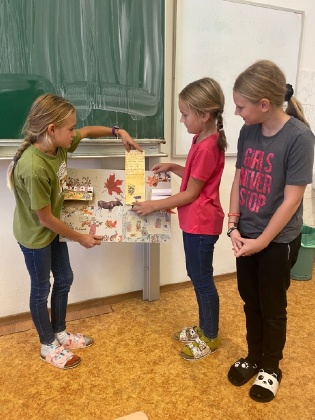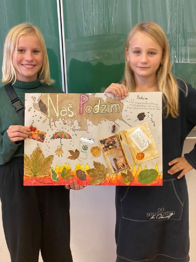 S prvním podzimním dnem zahájila třída V. B projekt s názvem Podzim. Páťáci ve skupinách vytvořili plakáty a odprezentovali informace, které je s tímto ročním obdobím napadaly. Dozvěděli jsme se tak nejen o počasí, sklizni, činnostech na poli i na zahradě, ale představili i básničky a písničky vztahující se k podzimu, přečetli domácí sezónní recepty, seznámili s významnými podzimními svátky. Následně v hodinách výtvarné výchovy vytvářeli podzimní skřítky a jejich obydlí. Vyvrcholením byla posklizňová ochutnávka domácích džemů, marmelád a medů a soutěž o nejchutnější vzorek. Mgr. Monika Krejčová