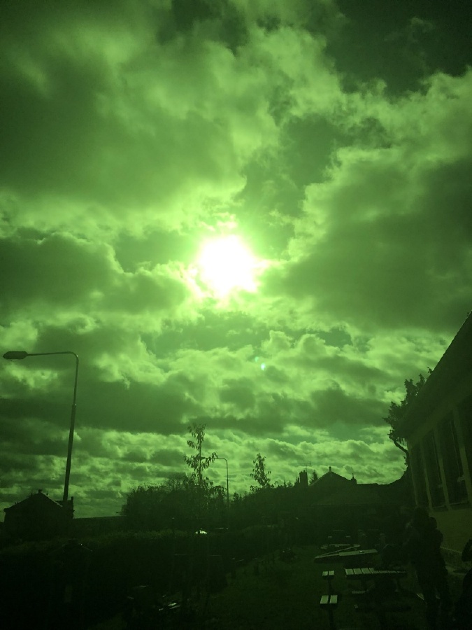 Během dne jsme se vystřídali v šesti centrech, kde byly přichystány lebky s pády a vyjmenovanými slovy, kódovaná matematika s duchy a kostlivci, halloweenské anglické čtení a pověst o Jackově lampičce. Práce se všem dařila a každý dostal za odměnu pusinkového ducha a spousty netopýrů, pavoučků a dýní přilepených na ruce. Dopoledne nám všem rychle uteklo. V úterý jsme si do aktovky přibalili speciální brýle na pozorování Slunce, které jsme si pořídili v planetáriu a na obloze jsme pozorovali částečné zatmění Slunce. Chvílemi se nám ztrácelo za mraky, ale nakonec se počasí přece jen umoudřilo ve my jsme ve 12 hodin a 17 minut spatřili čtyřicetiprocentní zatmění. Mnozí z nás byli přírodním úkazem velmi nadšení a ani se nám nechtělo odcházet do školní jídelny na oběd a pak domů na prázdniny.