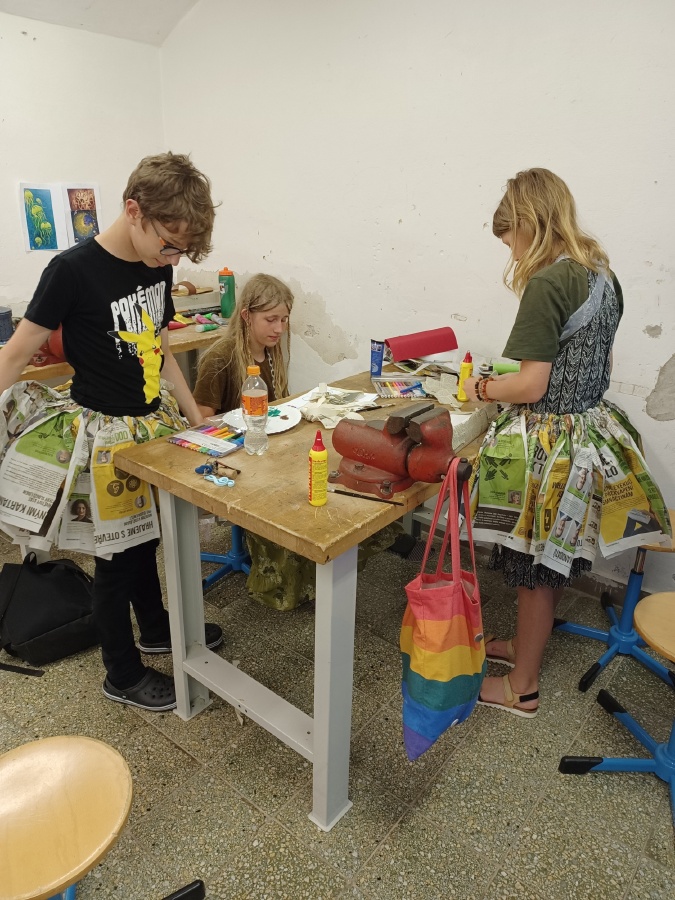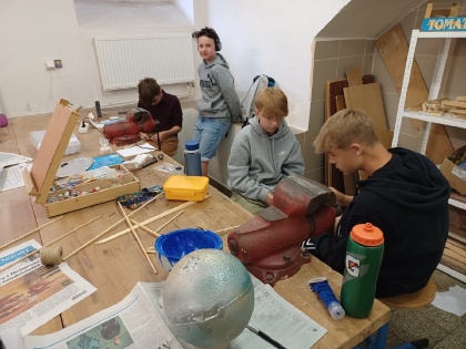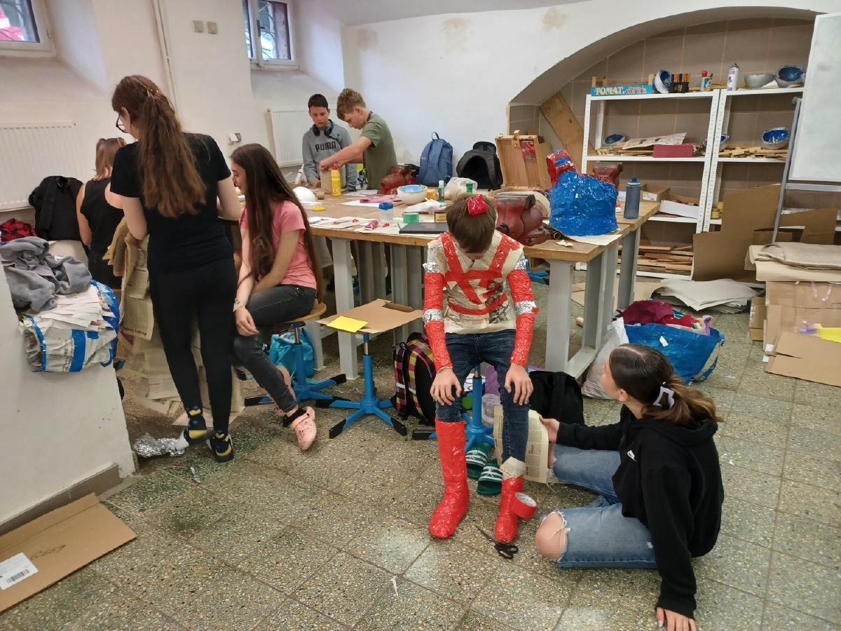 Od pondělí 5. června do čtvrtku 8. června probíhal pro zájemce výtvarný kurz Tvořidla. Zúčastnilo se ho 22 mladých výtvarníků z šestých, sedmých a osmých ročníků.. Děti si vyzkoušely různé výtvarné techniky: malba na plátno neonovými a akrylovými barvami, keramiku, tvorba objektů z kartonu, plat od vajíček a různých materiálů, malbu akvarelem, koláž, dokreslování fotografie, práci s textilem, vytvářely oblečení a boty z papíru. Po celou dobu panovala tvořivá nálada, z hodnocení dětí vyplynulo, že si tvoření užily, velmi je bavilo a už se těší na další ročník. Výsledná díla budou zdobit chodbu prvního patra celý školní rok. Mgr. Daniela Podoláková