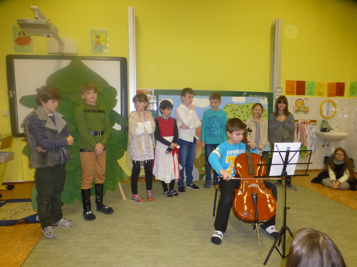 Děti ze IV. A nacvičily krásnou vánoční besídku. Recitovaly básně se zimní a vánoční tematikou, zpívaly koledy, hrály na akordeon, kytaru a violoncello. Zahrály rodičům pohádku O Sněhurce a zazpívaly operetku Červená Karkulka. Pro velký úspěch programem potěšily ještě i prvňáčky. Vystoupení se dětem opravdu povedlo, potěšily rodiče, kamarády i paní učitelku. Mgr. Marcela Chroustovská