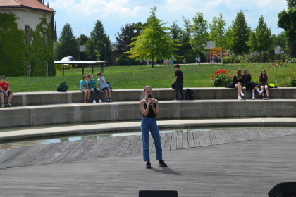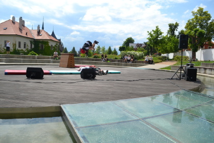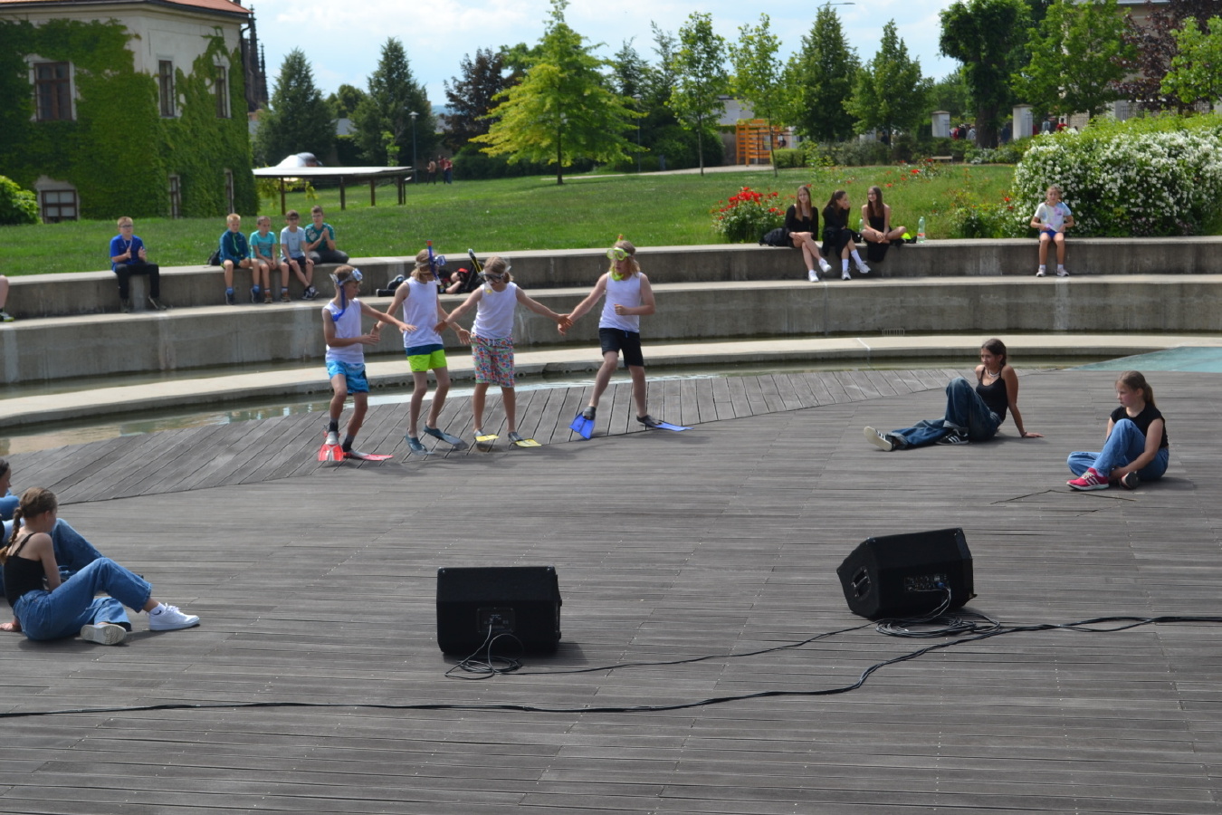 Po pohádkové trase jsme se mohli posadit u vodního pódia a zhlédnout hudební a taneční program. Obdivovali jsme krásný zpěv našich dětí, krásná taneční a sportovní vystoupení, žasli jsme nad neuvěřitelnými kousky Bertíka a Vojty. Zkrátka to nemělo chybu. Všem vystupujícím mnohokrát děkujeme, postarali se nám o krásné dopoledne. Bohužel v sobotu nám deštivé počasí nedovolilo program zopakovat pro veřejnost, nezbývá než se těšit zase za rok.