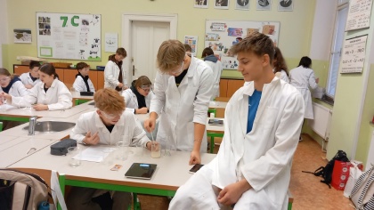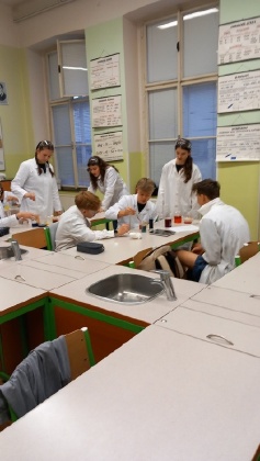 V předvánočním čase osmáci z céčka využili znalostí hmotnostního zlomku. Vytvořili různě barevné roztoky o různých koncentracích a snažili se vytvořit barvy duhy. V mnoha případech se to i dařilo! Mgr. Petra Francová