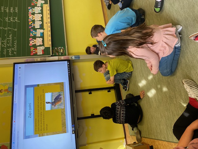 Slunečné počasí vylákalo třeťáky k venkovním aktivitám. Využili nového prostoru u školy k prozkoumání jinak "neviditelného" světa pomocí mikroskopu, došli si na Dolní Žižkov vyzkoušet své fyzické síly. Při tělesné výchově se žáci vzájemně doplňují v rámci skupinových aktivit a zkouší dodržovat fair- play chování. Rádi si alespoň na chvilku vyběhnou přes ulici do parku k Barboře a venkovní učebnu využívají nejen ke čtení, ale i k relaxačním chvilkám. Nová interaktivní tabule děti nadchla a pokaždé něčím mile překvapí. Procvičování výuky pomocí notebooků děti tradičně uvítaly. Andrejka Sýkorová se v pátek za podpory celé třídy úspěšně zúčastnila hudební soutěže. Mgr. Štěpánka Menová