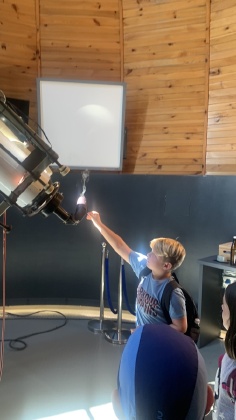 Všichni žáci čtvrtých ročníků vyrazili v pátek 15. 9. společně na exkurzi do Planetária v Hradci Králové. V přírodovědě se právě baví o naší planetě Zemi, o Sluneční soustavě a vůbec o celém vesmíru, a proto jim jako zpestření k výuce vybraly paní učitelky vzdělávací program Cesta Sluneční soustavou. Třešničkou na dortu bylo bezpečné pozorování Slunce přímo hvězdářským dalekohledem. Jelikož byla obloha úplně “vymetená” naskytl se dětem vzácný pohled na tzv. sluneční protuberance - tedy ohnivý oblak plazmatu vybíhajícího ze Slunce. Všichni si výlet náramně užili! Mgr. Jaroslava Šibravová