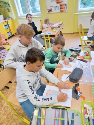 Ve čtvrtek 19. 10. proběhlo druhé setkání osmáků a prvňáčků z céčka. Osmáci si pro své opatrovníky o hodinách výtvarné výchovy připravili výtvarnou dílnu zaměřenou na podzimní - halloweenskou tématiku. Nejprve dali prvňáčkům vlastoručně vyrobený dárek, záložku do knížky. Dárek paní učitelka Krejdlová velmi ocenila, protože prvňáčci již čtou v knížkách a záložka se jim velmi hodí. Dále si připravili obrázky dýní s překvapením a naučili prvňáčky princip výroby. Poté se věnovali výrobě dekorace do třídy ve formě malého skládaného netopýrka. Na konec jsme si společně zahráli hru na upíra, u které bylo napětí i zábava. Všichni si společné dvě hodiny užili a už nyní plánují další společné setkání, tentokrát v čertovském duchu. Mgr. Daniela Podoláková