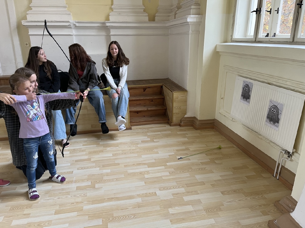 V pondělí 30. října připravili deváťáci z céčka pro svoje malé svěřence ze II.C halloweenské soutěže. Děti střílely lukem na duchy, létaly na košťatech, plazily se pavučinou, aby zdolaly pavouka, skládaly dýně a netopýry, házely „čáru“ s halloweenskými obrázky a také si mohly vyzkoušet hod do koše nebo strašidelného kelímku. Za splněné úkoly je čekaly drobné odměny a sladkosti. Všichni si pondělní ráno velmi užili a těší se na další setkání v rámci patronátu.. Mgr. Miloslava Sklářová