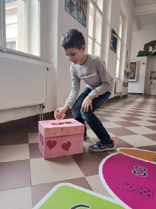 Na středu 14.2. vyhlásili parlamentáři Valentýnskou poštu. Krabice jsou umístěné ve všech patrech školy a už se pěkně plní....Svá přáníčka do nich vhodili i druháčci z béčka...