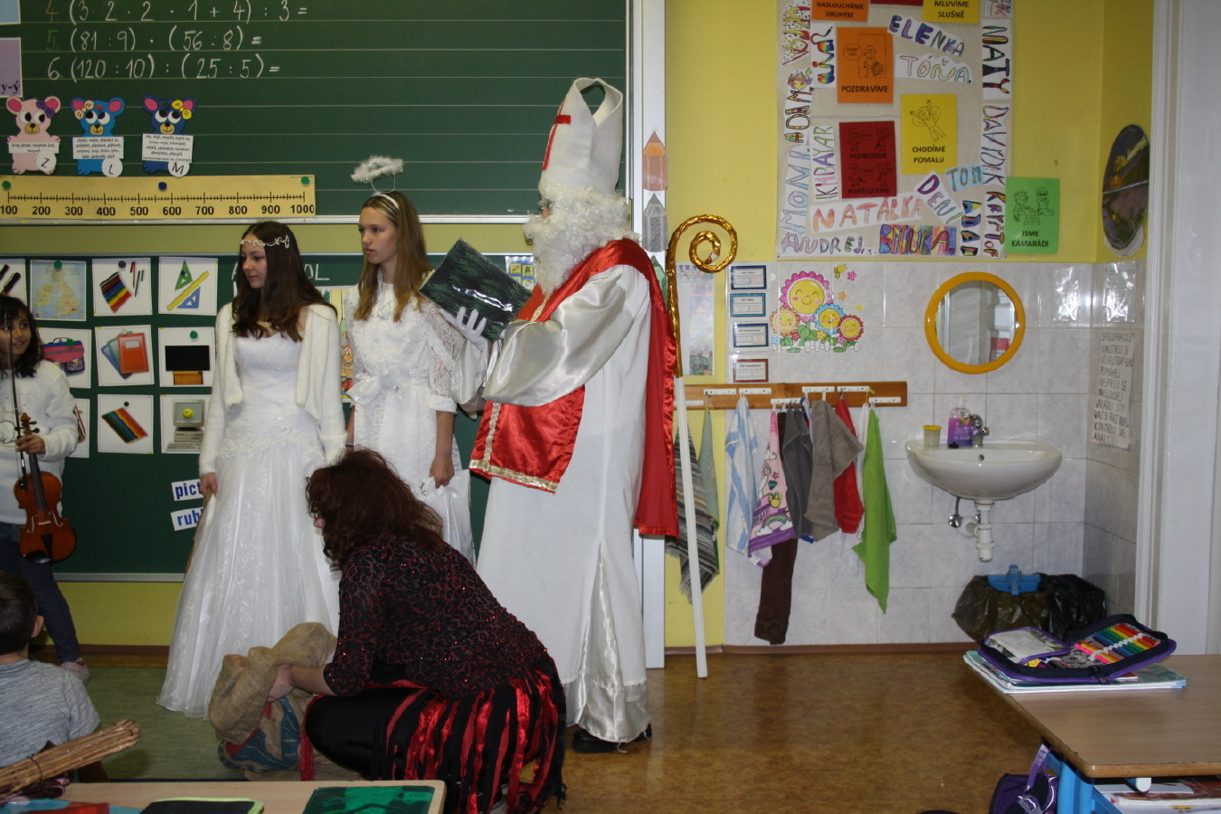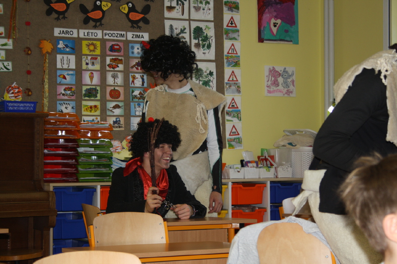 Naši čtvrťáci si z čertů už nic moc nedělali, ti se utrhli z řetězu a předvedli se v plné parádě - někteří zlobivci i v pytli skončili. Ale k velké radosti svých vyučujících byli zase v pořádku navráceni zpět do třídy. Krásné vystoupení pro čertovskou chasu připravily děti ve III. D, na housličky budou čerti určitě dlouho vzpomínat. A nejvíc se chásce líbilo u prvňáčků - ti jsou vzorní, ať čerti hledali, jak hledali, žádné hříšníky nenašli, a tak metly a pytle zahálely....