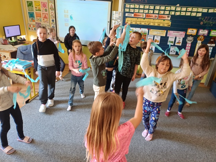 V pátek 22.3. se mladší školáci oblékli do modré barvy a užili s projektový den na velice důležité téma - v hlavní roli byla tento den voda. Děti tvořily obálku knihy, tančily a pohyby vyjadřovaly znějící hudbu (skladba Vltava), poslouchaly písně s touto tematikou, zhlédly dokumenty o významu vody, koloběhu a čištění vody, pracovaly s příběhem Kapičky Magdičky, výtvarničily - tvořily plakáty a koláže, na interaktivní tabuli přiřazovaly pojmy, obrázky, pexesa, realizovaly pokusy s vodou. Téma prosáklo i do českého jazyka a matematiky. Zkrátka spoustu zajímavých činností jsme si užili a spoustu nového jsme se dozvěděly a těšíme se na další projekty!