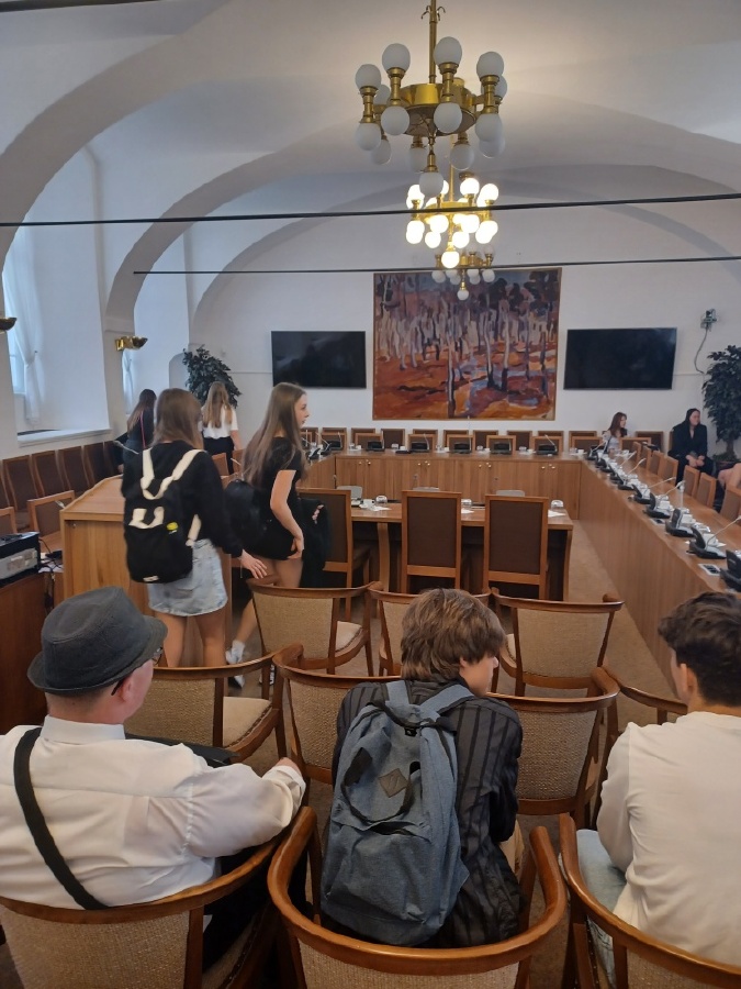 Osmáci plnili v rámci občanské výchoovy úkoly na téma Státoprávní uspořádání České republiky, nejlepší řešitelé jeli v úterý 4. června za odměnu na exkurzi do Poslanecké sněmovny Parlamentu České republiky. Prošli si zdejší prostory, dozvěděli se přesněji, co obnáší práce senátorů a poslanců. Děkujeme průvodci, kterým byl Jakub Skýva, že se o nás po celou dobu vzorně staral. Mgr. Kateřina Vyčichlová