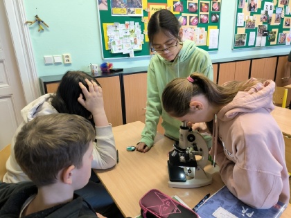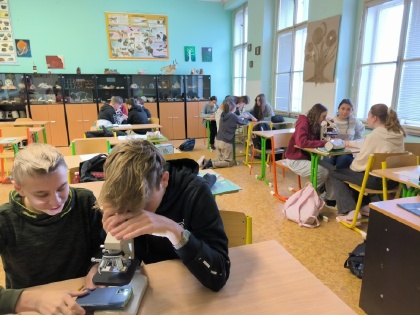 Osmáci z áčka a béčka během hodin přírodopisu zkoumali pomocí trvalých preparátů tkáně lidského organismu. Osvěžili si práci s mikroskopy a zjistili, že soubory buněk stejného tvaru a funkce lze rozdělit do čtyř skupin. Poznali, že lidské tělo je složeno z několika bilionů buněk a tkáně spolu s tělními tekutinami tvoří základ našeho organismu. Mgr. Iva Klaudvá