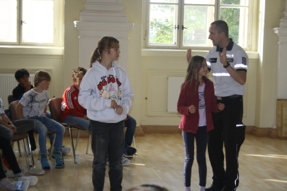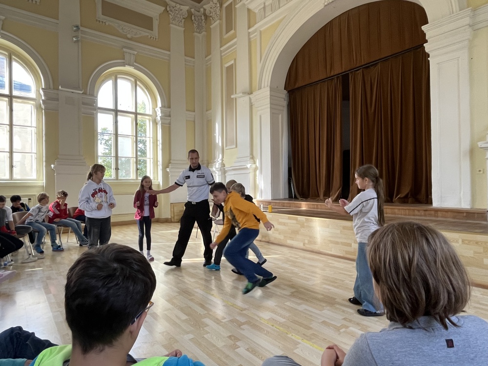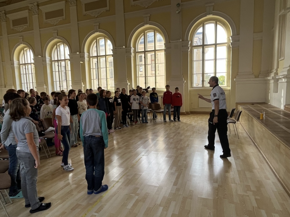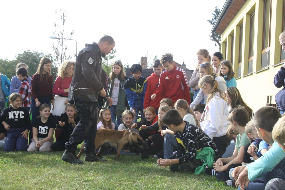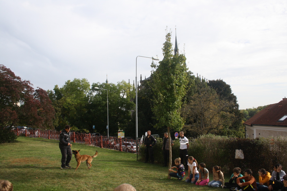 Ve středu 11.10. si páťáci užili velice přínosnou a příjemnou besedu s příslušníky Policie České republiky. Děti si připomněly mnoho důležitých zásad, které by měly dodržovat při ochraně svého osobního bezpečí, součástí besedy byly i pro děti velice atraktivní ukázky práce se služebními psy (a štěňaty) a ukázka policejní techniky. Děkujeme panu Loudovi, který akci zprostředkoval a všem policistům, kteří se s námi setkali - moc jsme si to užili!