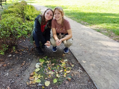 Třída V. C využila hezkého počasí a vydala se pracovat do terénu. Děti měly za úkol ve dvojicích vytvořit obrazce z přírodnin. Nasbíraly materiál, zapojily svou fantazii a vznikla zajímavá originální díla. Mgr. Eva Doležalová