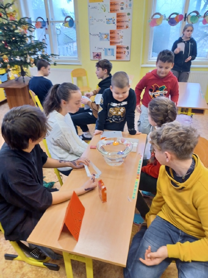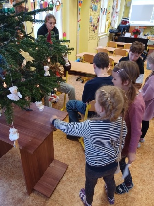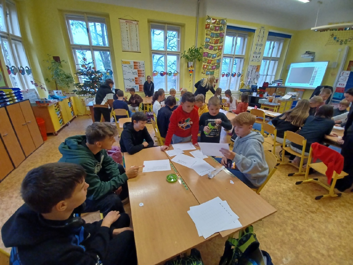 Ve čtvrtek 21.12. se opět setkaly děti z I. a VIII.C, tentokrát u vánočních center. Setkání jsme zahájili společným zazpíváním Rolniček. Osmáci měli na starost šest stanovišť, která si skupinky prvňáčků postupně prošly. Centra byla zaměřena na vánoční zvyky a tradice. Krájela se jablíčka, pouštěly lodičky, házelo se pantoflí, ťukalo na kurník, hledaly se kapří šupinky a luštila se vánoční tajenka. Po splnění všech úkolů si děti navzájem předaly dárky a v kruhu si řekly, co se v centrech dozvěděly. Setkání jsme ukončili opět společně zazpívanou koledou a slibem dalšího setkání. Mgr. Daniela Podoláková