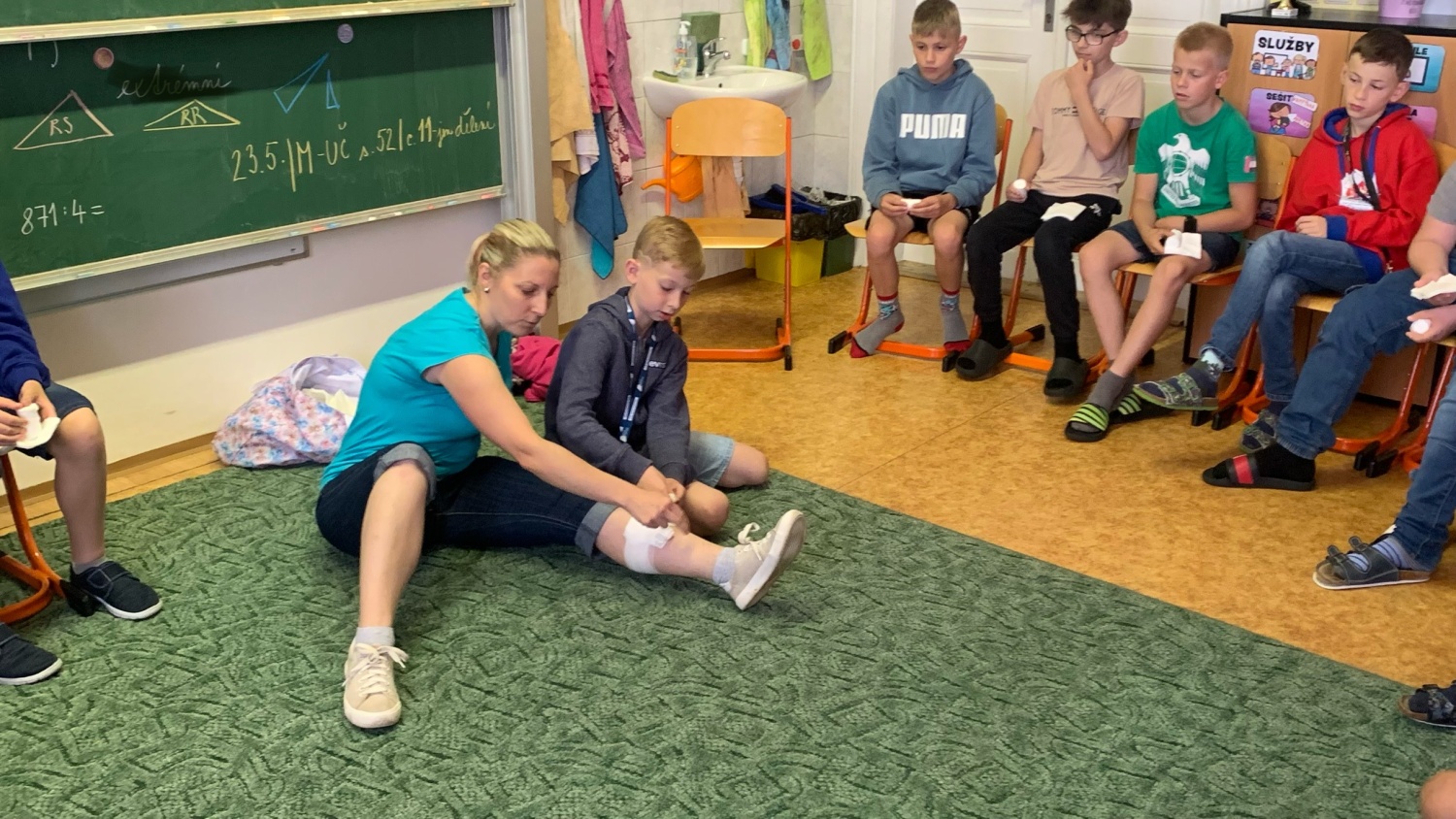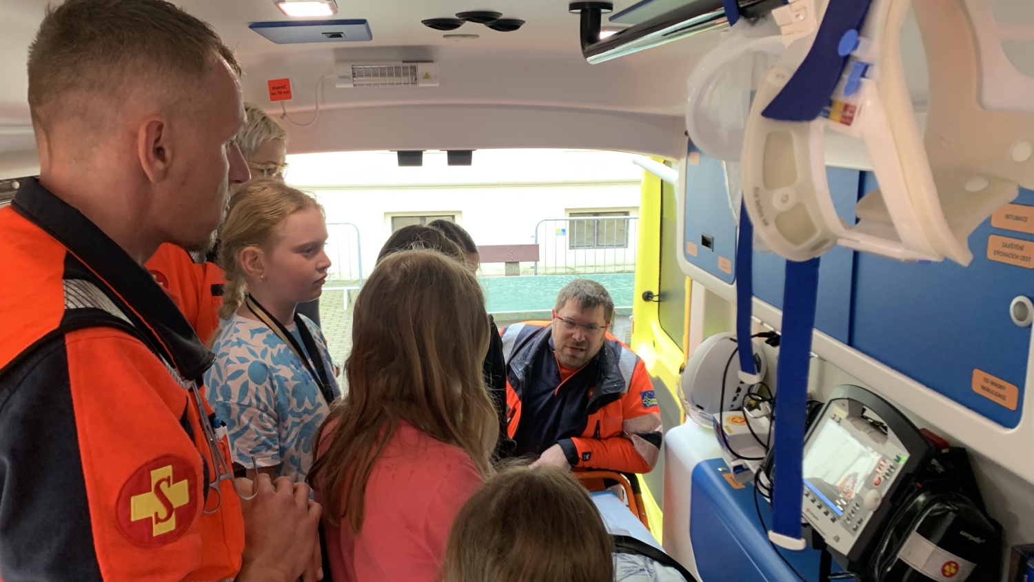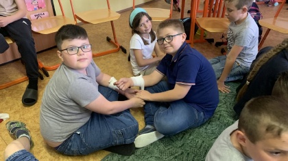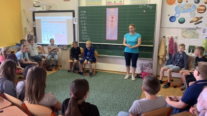 Jsme moc rádi, že projekt Rodiče ve výuce se setkal ve IV. B s velkou vstřícností. V pátek 24. května se dětem věnovali hned dva rodiče - paní Jana Hrubá a pan Martin Lebeda. Oba pracují ve zdravotnictví a připravili si pro děti dvouhodinový blok zaměřený především na zásady poskytnutí správné první pomoci. Děti si tak na figuríně vyzkoušely nepřímou masáž srdce, dále pracovaly na ošetření drobných poranění či si zopakovaly, zásady správné komunikace s dispečerem na lince 155. Velkou radost dětem udělal i příjezd dvou záchranných vozů, které si mohly z blízka prozkoumat. Nekonečná řada dotazů ze strany dětí byla potvrzením, že toto téma děti velmi zaujalo a paní Hrubé i panu Lebedovi patří velký dík. Mgr. Jaroslava Śibravová