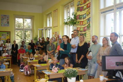 Paní učitelka Radka Krejdlová přivítala ve své třídě I. C v pondělí 4. září 23 nových žáčků a jejich rodiče a prarodiče. Protože tuto třídu budou navštěvovat tři ukrajinské školačky, některé dny je bude podporovat při práci ukrajinská slečna asistentka Katarina Pavlenko, která se představila dětem i rodičům hned první školní den. Ve školní družině najdete tyto prvňáčky v oddělení Kačenek, pečovat o ně bude paní vychovatelka Lenka Tyrnerová. I do céčka budou chodit starší školáci, budou to osmáci z céčka. Přejeme novým prvňáčkům stále takový krásný úsměv na tváři, jako měli první školní den!