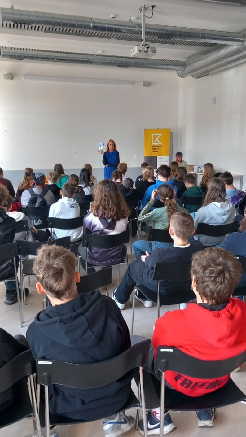 V úterý 2. dubna sedmáci navštívili městskou knihovnu, kde pro ně byla připravená beseda se spisovatelkou Michaelou Fišarovou. Téma setkání bylo mimořádné důležité - domácí násilí. Paní Fišarová, autorka několika oceněných knih, se věnuje právě této problematice s hlubokým porozuměním a empatií. Na pomoc si přizvala herce a moderátora Miroslava Reila a část knihy dětem předvedli jako dramatizaci. Během diskuse se sedmáci nebáli pokládat otázky a vyjádřit své myšlenky, zároveň si připomněli, jak je důležité vzájemné naslouchání. Oba aktéři posluchače zaujali a někteří projevili zájem si knihu přečíst - určitě jim to umožníme a knihu do školy objednáme. Mgr. Petra Francová
