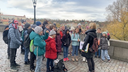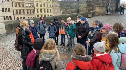 V pondělí 20.11. se čtvrťáci z béčka vypravili vlakem na poznávací výlet do Prahy. Na nádraží se sešli již před sedmou hodinou ranní, aby stihli poznat co nejvíce pozoruhodných míst. Největší pozornost věnovali Karlovu mostu - už vědí, kdo ho střeží, proč je tak pevný, kde se nachází ledňáček, socha Bruncvíka, co jsou ledolamy nebo jak je most ochráněn proti ničivým povodním. Děti zavítaly i na Kampu, kde v zábavné soutěži plnily v týmech úkoly v blízkém okolí. Dále je okouzlila i Staroměstská radnice a Orloj, Národní muzeum a jezdecká socha sv. Václava. Výlet byl podle slov dětí dokonalý a určitě do Prahy opět vyrazí. Mgr. Jaroslava Šibravová
