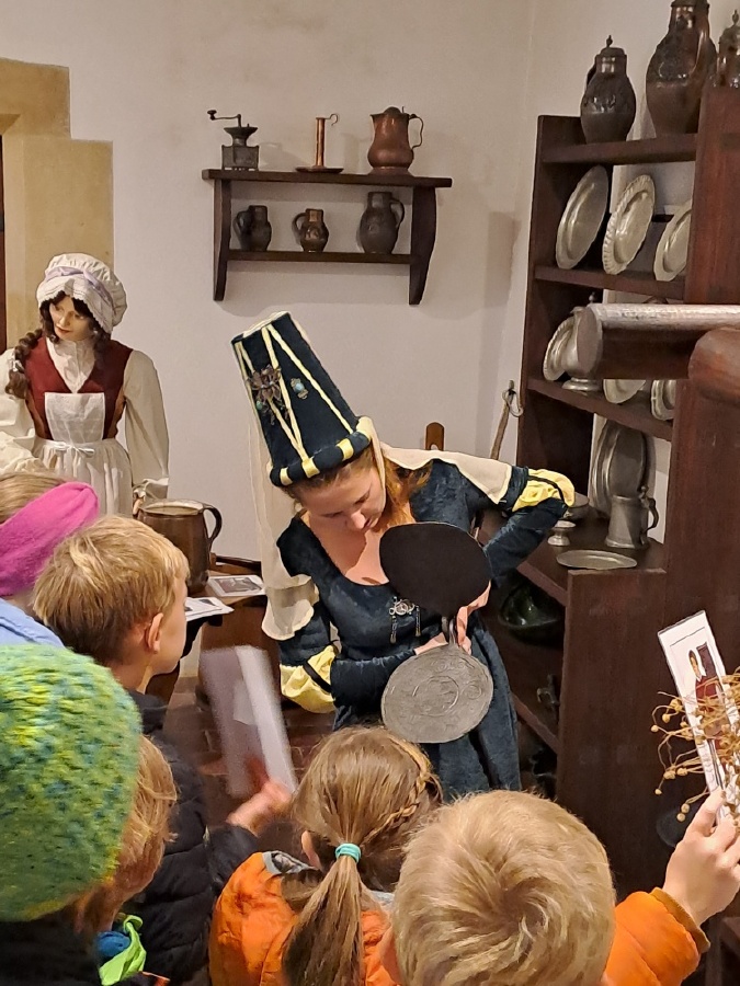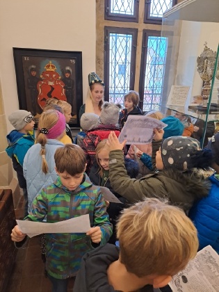 O cechovní organizaci v našem městě a o středověkých řemeslech se žáci třetích ročníků dozvěděli v Kamenném domě. Zábavnou formou programem žáky provedla matrona-žena cechovního mistra v dobovém kostýmu. V průběhu prohlídky expozice středověkého měšťanského domu se žáci seznámili s prací bednářů, šveců, tkalců, krejčích, řezníků, koželuhů, cínařů, tesařů, hrnčířů a dalších. Velmi zajímavý byl výhled z balkónku Kamenného domu na naše město, stejně tak i pohled na bohatou sochařskou výzdobu domu. V závěru programu žáci dostali cechovní osvědčení se svým jménem na památku. Mgr. Jana Němečková Růžičková
