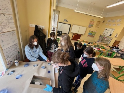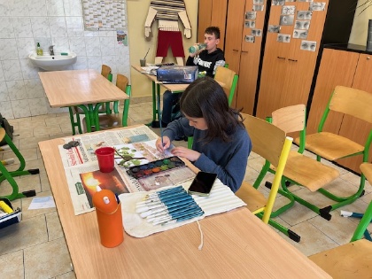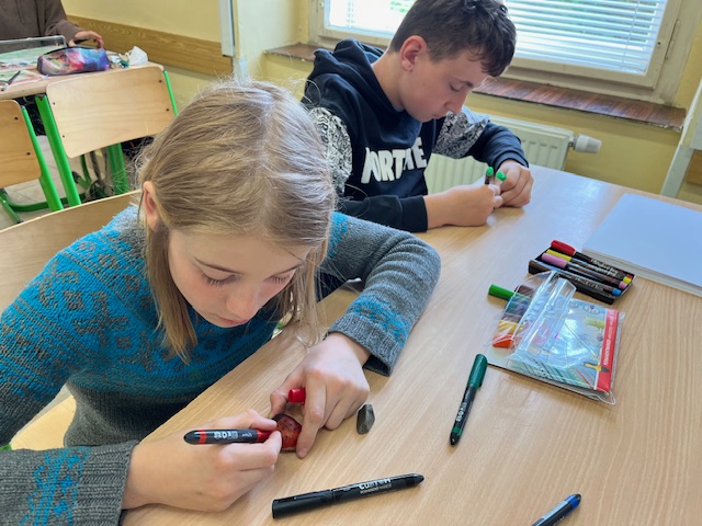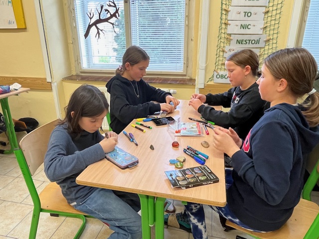 V této dílně jsme se nejprve vypravili proti proudu Vrchlice. Povídali jsme si o jejím prameni a toku - o mostech a mlýnech, které podél ní můžeme najít, zmínili jsme i některá fakta z geologie. Vyfotili jsme si místa, která nás zaujala. Pak jsme se vrátili do školy a začala výtvarná část naší dílny. Podle fotografií jsme malovali obrázky, vyzkoušeli jsme si tvoření kapek sprejem, stínovaním a další zajímavé techniky, zdobili jsme kamínky nasbírané ve Vrchlici. Výsledky naší práce si můžete prohlédnout na nástěnce ve třídě V. B. Nám se moc líbí. Ing. Blanka Železná