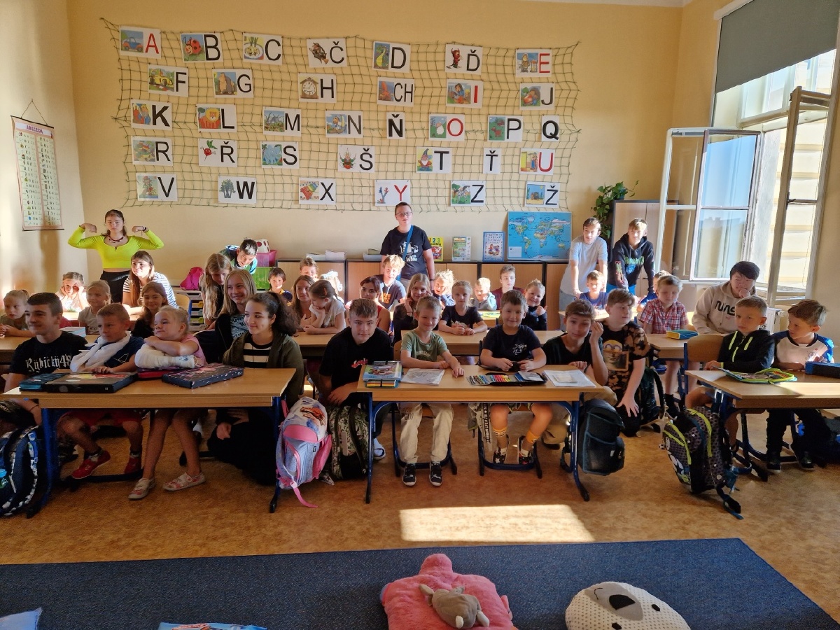 V pátek 8.září se první hodinu zašli podívat osmáci z áčka za svými svěřenci do I.A. Bylo to první setkání. Výškový rozdíl dětí v obou třídách byl úsměvný a výraz v očích prvňáčků nádherný. Osmáci ke svému patronátu přistoupili velmi zodpovědně a po celou dobu společných aktivit se snažili být prvňáčkům velkou oporou. Skládali a podepisovali krabice na výtvarnou výchovu a při kooperativní aktivitě se vzájemně podporovali, pomáhali si a skvěle se sladili. Však můžete posoudit sami, jak jim to společně šlo. Mgr. Alena Tyrkasová