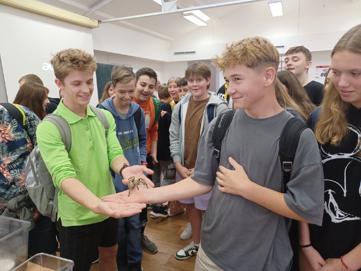 Ukázal nám různé učebny, viděli jsme například novou chemickou laboratoř, počítačovou učebnu, učebnu oboru podnikání, učebnu biologie, dokonce i pitevnu. Někteří z nás si vyzkoušeli, jak se dojí kráva na modelu, který zdobí chodbu školy. Velký zážitek jsme měli v učebně, kde si pro nás studenti připravili přehlídku velmi zajímavých živočichů a my jsme si je mohli pohladit nebo přímo vzít do ruky. Někdo se pomazlil s agamou, jiný s hadem a nebo se sklípkanem. Dále jsme navštívili školní zahradu, mohli jsme ochutnat hroznové víno a zavítali jsme například do zimní zahrady. Studenti a studentky nám předvedli výcvik psů. A na závěr jsme se projeli traktorem. Bylo pro nás připravené bohaté pohoštění. Celé dopoledne bylo velmi zajímavé a přínosné nejem pro zájemce o studium na této škole. Velmi děkujeme všem, kteří se nám věnovali. Mgr. Daniela Podoláková