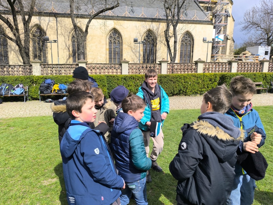 V úterý 8. dubna žáci IV.B a IV.C vyrazili na exkurzi do Prahy, konkrétně na Vyšehrad. Cestování vlakem a následně metrem bylo pro leckteré žáky úplnou premiérou. Čas před naplánovaným programem využila každá třída jinak. Žáci z béčka se kochali nádhernými výhledy na Vltavu, Pražský hrad a jiná krásná zákoutí našeho hlavními města a trochu se vydováděli na krásném, tematicky laděném hřišti. Žáci z céčka využili čas k návštěvě Vyšehradského hřbitova - krátce se zastavili u hrobek známých a důležitých osobností českého národa, nakonec i u hrobky Slavín.