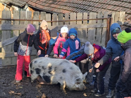 První adventní týden strávily děti ze IV. A a IV. B v ekocentru Chaloupky na Vysočině. V průběhu pobytu se děti přenesly v čase do dob našich předků. Pomocí stopovaček a hádanek se seznámily s prostředím zámečku Chaloupky a sehrály divadelní přdstavení. V úterý děvčata připravovala polévku pro společnou večeři a vykouzlila výborné chlebánky, chlapci se vydali do lesa s pilou a sekerami nachystat dřevo. Odpoledne proběhlo ve znamení staročeských her. Ve středu jsme se podle mapy vydali na zkušenou do světa. Na farmě děti zvládly z mléka vyrobit máslo i výborný sýr, z vlny plstily ozdobičky a seznámily se se zvířecími obyvateli farmy.