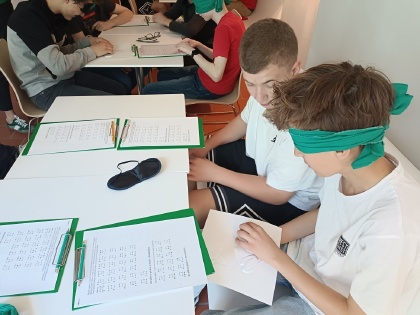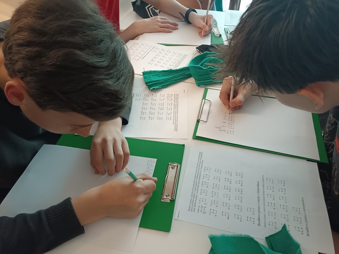 Třídy VII. A a VII. B navštívily v rámci projektového dne Regionální muzeum v Kolíně, kde se prostřednictvím zábavného vzdělávacího programu o lidských smyslech seznámily s tím, jaké je to žít se zrakovým postižením. První část audiovizuálního programu byla zaměřena na vznik slepeckého písma, žáci po pochopení principu sami zapisovali slova v Braillově písmu. Ve druhé části si všichni mohli vyzkoušet hmatové a metodické pomůcky, stolní hry pro zrakově postižené, se zavázanýma očima tak zjistili, jak jsou zdánlivě snadné aktivity bez užití zraku obtížné. Během dopoledne získali ale také informace o významu pomoci, o tolerantním a solidárním chování vůči nevidomým. Mgr. Monika Krejčová, Mgr. Šárka Dáňová