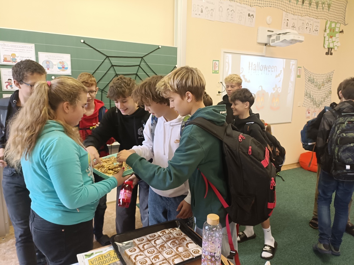 Ve čtvrtek po podzimních prázdninách se sešla II.D se VII.B, aby společně oslavili halloween. U druháčků ve třídě zavládla i díky některým maskám a převlekům veselá atmosféra. Nejprve žáci vytvářeli podzimní lucerny, zavařovací sklenice zdobili barevnými listy a provázky, ve druhé hodině se vzájemně seznamovali během stolních her. Příjemné setkání zakončili tematickým občerstvením, perníčky a linecké, zdobené jak jinak než v duchu halloween, všem moc chutnalo. Mgr. Monika Krejčová