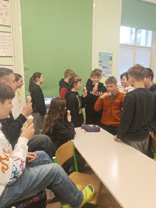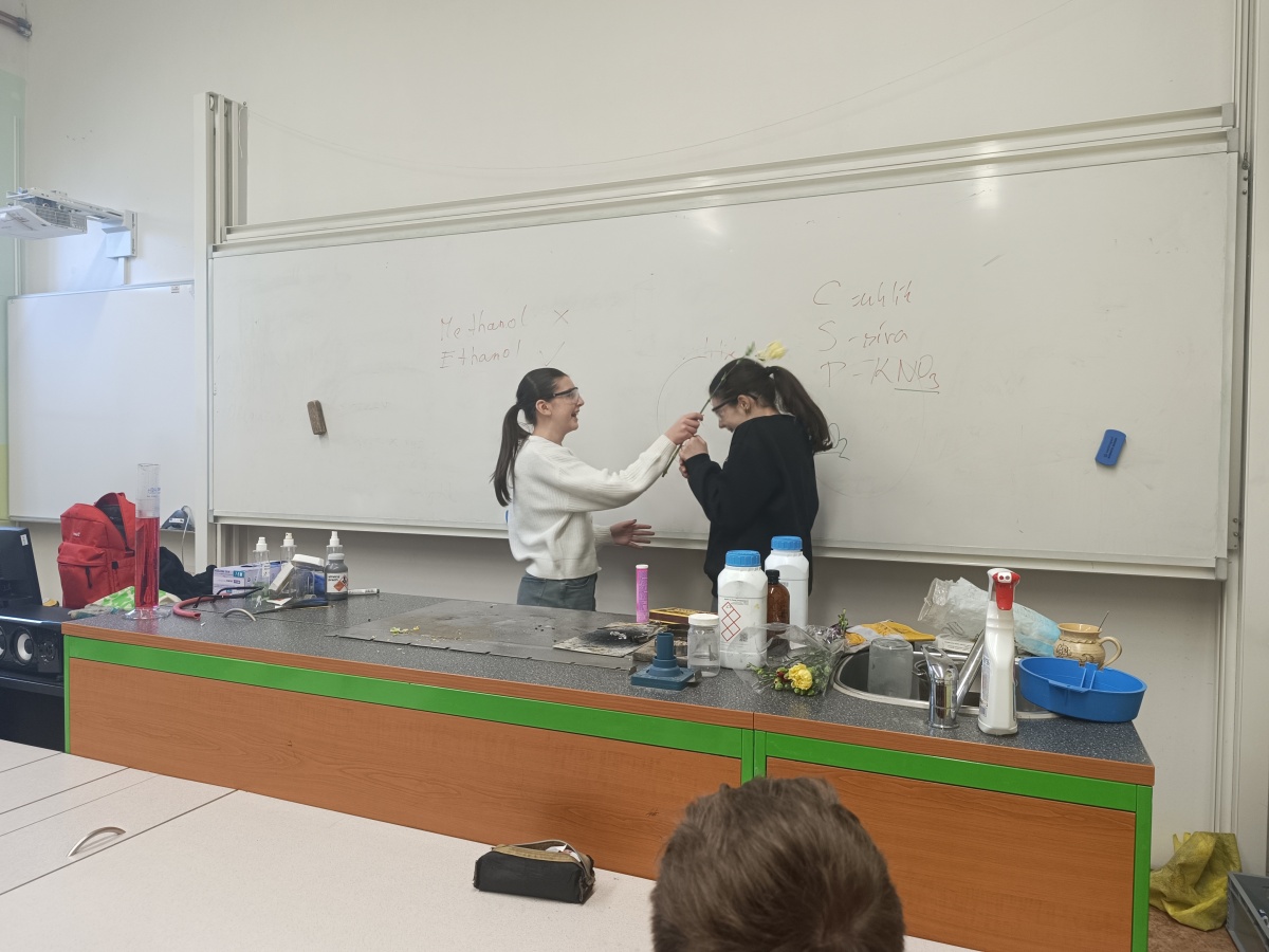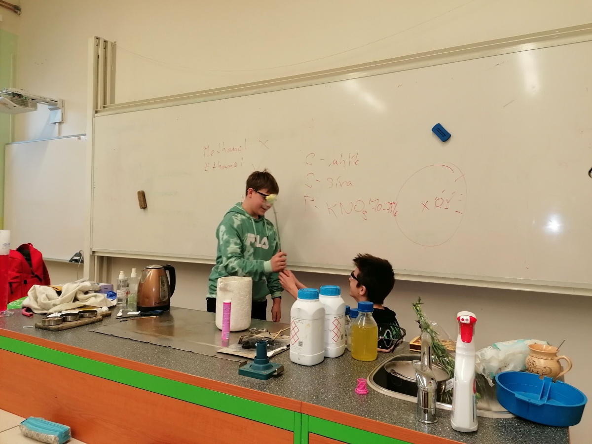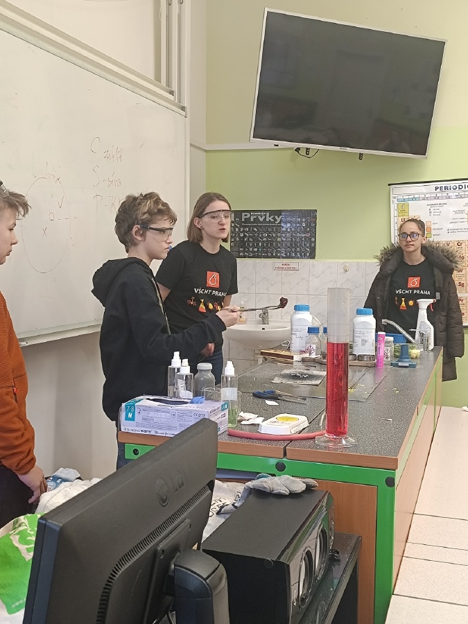 Osmáci měli možnost zažít chemii trochu jinak díky studentkám z VŠCHT Praha, které přivezly program Hodina moderní chemie. Celou hodinu sledovali zajímavé experimenty, objevovali nečekané chemické reakce a dozvěděli se spoustu nových informací. Seznámili se s vlastnostmi a použitím suchého ledu a tekutého dusíku, nechali se překvapit barevnými změnami redoxních reakcí pokusem Semafor, pozorovali hoření a výbuch střelného prachu. Vrcholem programu byla výroba zmrzliny za pomoci kapalného dusíku – výsledek byl nejen chutný, ale také ohromující. Tento program jim ukázal, že chemie není jen teorie, ale dokáže být praktická, zábavná a plná překvapení. Mgr. Hana Ratajíková