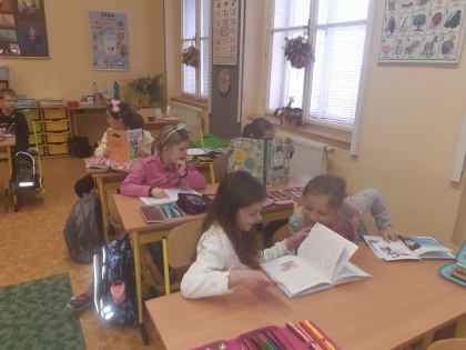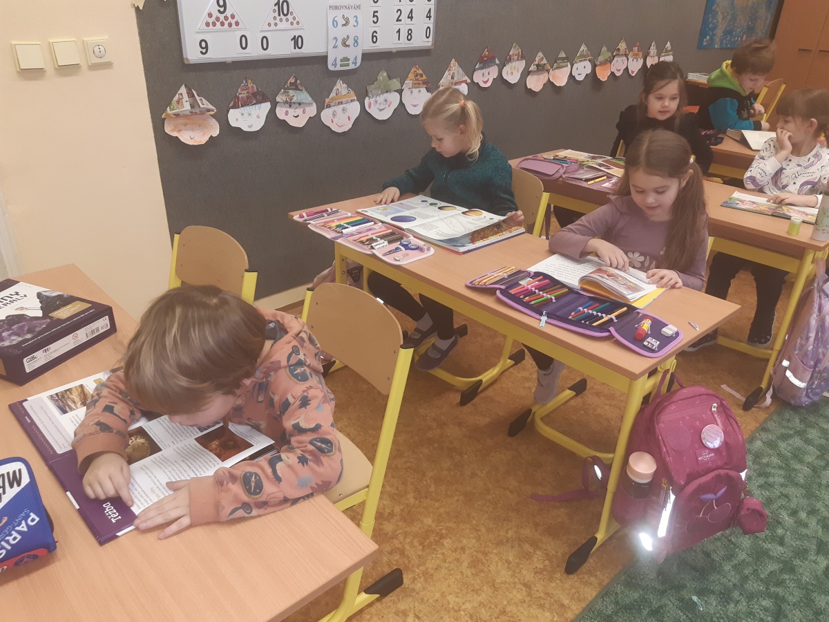 Po Vánocích si děti donesly knížky, které dostaly pod stromeček. Zahráli jsme si na knihovnu a knížky kamarádů jsme si půjčili na čtení i prohlížení. Dávali jsme velký pozor, aby se s nimi nic nestalo. Hodně nás to bavilo. Netrpělivě jsme čekali na adopci zvířátka, neboť jsme přispěli i s rodiči. Hned jsme se o papouškovi dočetli zajímavosti a už nám celé hejno sedí ve třídě na větvi. Každé úterý se těšíme na trenéry. Děti si vyzkoušely překážkové dráhy, plazení, ručkování, různé hry a i zdolání švédské bedny. Program v knihovně se nám moc líbil a nyní se nemůžeme dočkat prvního vysvědčení. Nervozita se trošku ukazuje, ale přeci se vše teprve chvíli učíme. Za odměnu si přejeme o malých prázdninách hezké počasí. Mgr. Hana Krejčí