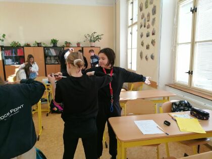 V poslední hodině fyziky měli sedmáci z céčka možnost vyzkoušet si práci s různými měřidly délky, ověřit si zásady správného měření a trénovat spolupráci ve skupině. Zjišťovali délku svého lokte, pídě, stopy, sáhu a porovnali naměřené délky s českými historickými jednotkami používanými v 13.-15. století. Všechny skupiny si s měřidly hravě poradily a ještě si užily legraci. Mgr. Hana Ratajíková