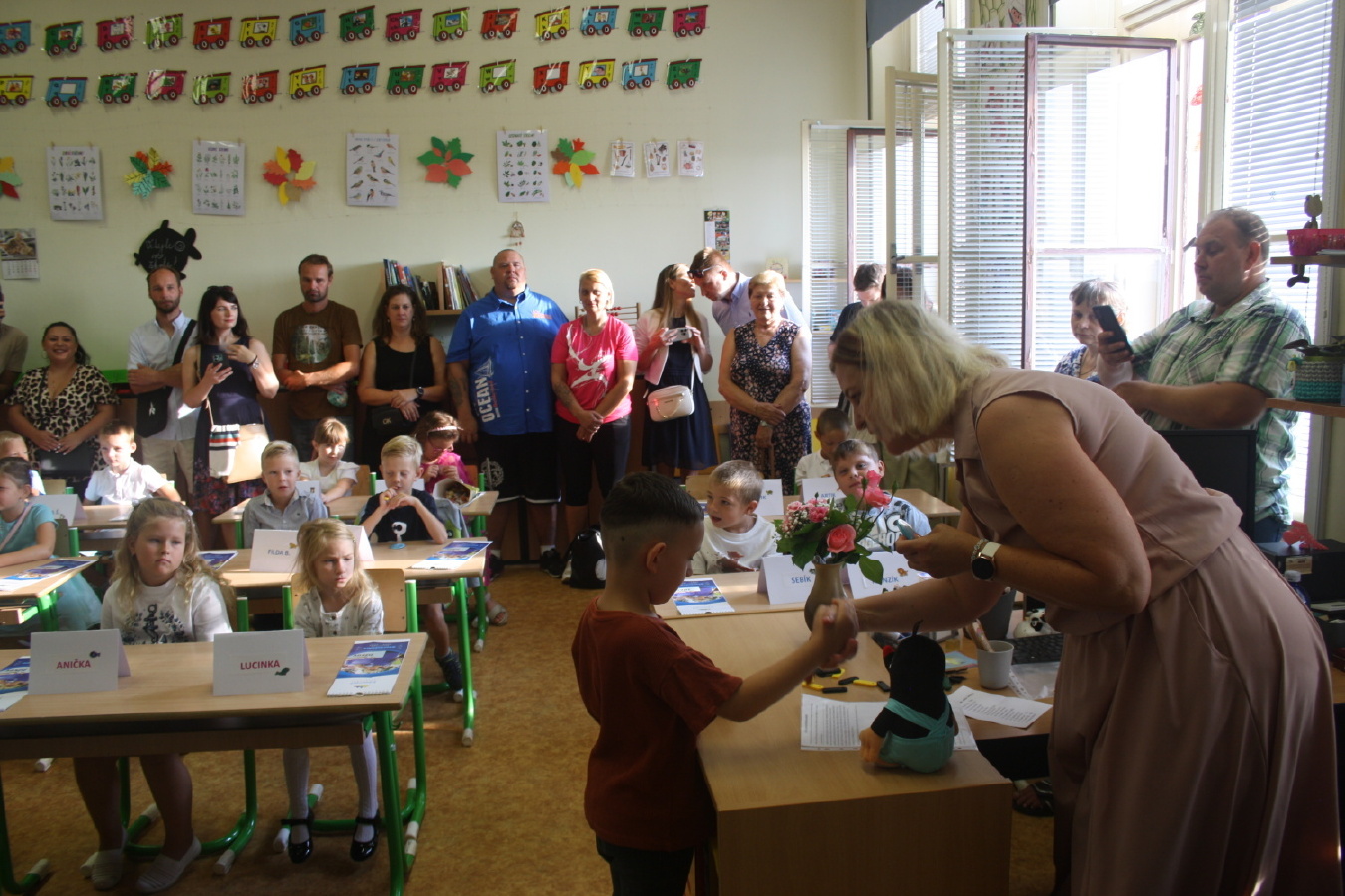 V pondělí 2. září jsme slavnostně zahájili nový školní rok. Nejslavnostnější tento den jistě bývá pro naše nové žáčky a jejich rodiče. V letošním roce jich poprvé zasedlo v lavicích naší školy 76 ve čtyřech třídách. Moc jsme se na ně už těšili. Pevně věříme, že se jim bude u nás líbit, najdou si nové kamarády, školní práce je bude bavit a naučí se spoustu nového. Paní učitelky pro to udělají maximum.