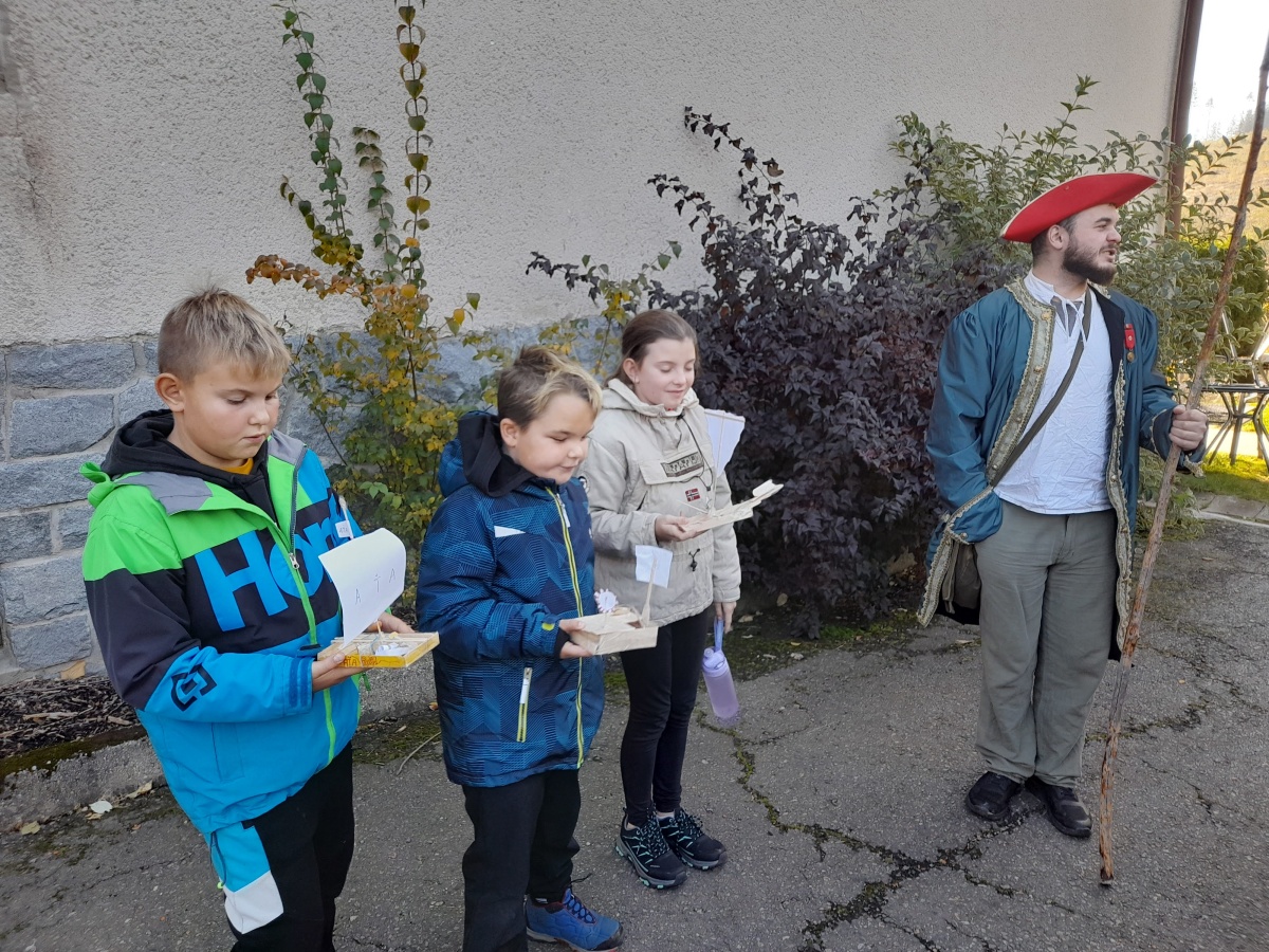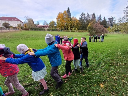 Třeťáci z béčka, déčka a čtvrťáci z céčka se minulý týden vydali na školu v přírodě do Horního Bradla, kde se během prvního dne proměnili v námořníky. Každý den na ně čekaly úkoly, které plnili ve skupinách se svými námořními flotilami. Jejich lodě vedly na všechny světadíly. Každá námořnická třída měla svého skřítka cestovatele, který jim s plavbou a úkoly pomáhal. Malí námořníci tvořili 3D mapy s místy, kde žijí různí živočichové, poznávali svět pod hladinou, obchodovali se surovinami, plnili admirálovy zapeklité příkazy, přenášeli střelný prach.
