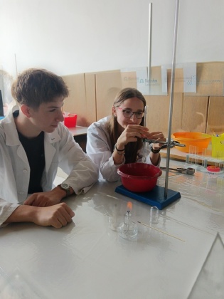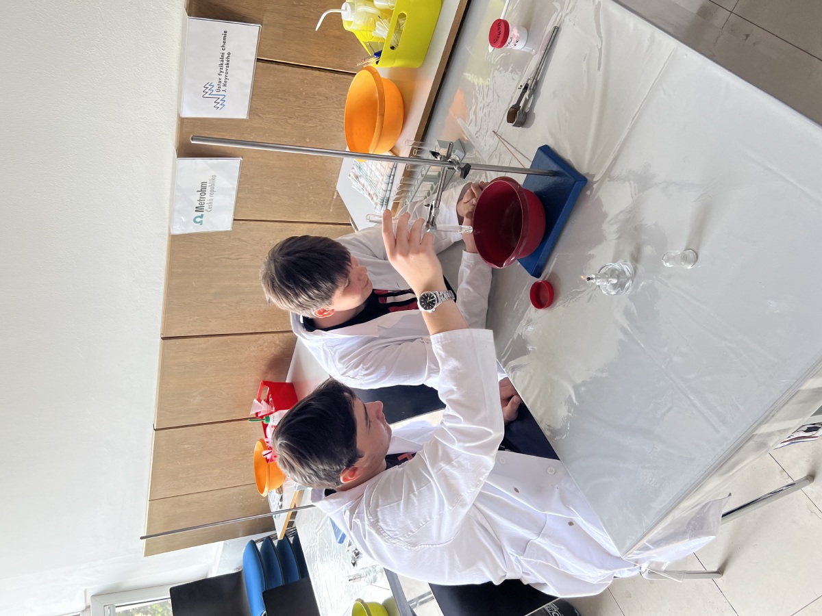 V pondělí 5. května se třída IX. B zúčastnila programu „Chemie není nuda“ v Ústavu fyzikální chemie J. Heyrovského v Praze. V první části si žáci v laboratoři připravili základní plyny (kyslík, vodík, oxid uhličitý, vodní páru) a zkoumali jejich vlastnosti, například hoření nebo „štěknutí“ vodíku. Následně si zopakovali rozdíl mezi homogenními a heterogenními směsmi a pozorovali Tyndalův jev pomocí laserového paprsku. Závěr programu patřil zajímavému povídání o J. Heyrovském, nositeli Nobelovy ceny za objev polarografie. Celý program byl velmi přínosný, praktický a potvrdil, že chemie opravdu není nuda. Ing. Šárka Nováková