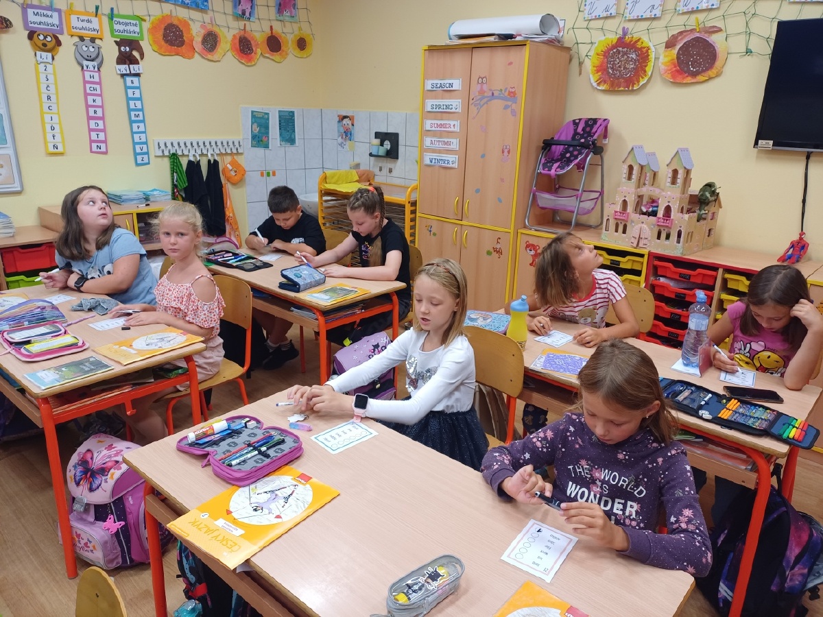 Třeťáci z déčka začali školní rok s velkým nasazením. Během českého jazyka, matematiky a angličtiny si postupně opakují učivo z druhé třídy. Pracují ve skupinách, na interaktivní tabuli, opakují formou her (Stonožka, pantomima, Simon says..) Pokud počasí dovolí, chodí se během přestávek protáhnout na školní dvůr, kde si zahrají oblíbenou vybíjenou. Moc se těší na hodiny tělesné výchovy s trenéry. V září nás navštíví Pavel Švejda a Dominik Jiráň, kteří pro děti připraví zajímavé hodiny plné pestrých aktivit. Bezpečnost při cestě do školy, ať už pěšky, v autě, či na kole si zopakovali v projektu: Zebra se za tebe nerozhlédne. Poutavé povídání si pro ně připravil pan policista Čihák. Všichni už se těší na to, co nám tento školní rok přinese, co nového se naučíme a co krásného spolu prožijeme. Mgr. Miroslava Falgeová
