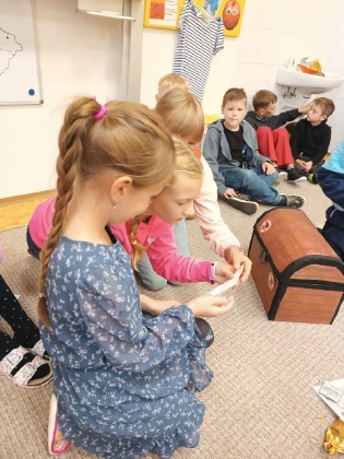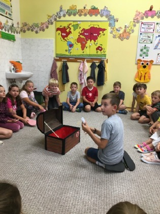Třeťáci z áčka se v letošním školním roce stali námořníky. Pečlivě pracovali na palubním řádu, aby byla celá posádka v pohodě a všichni táhli za jeden provaz. Naučili se hymnu námořníků. Dostali dopis od kapitána, kde je prosí o pomoc s nalezením pokladu. Nebude to snadná cesta, čeká je osm etap a za každou splněnou získají jednu indicii k nalezení pokladu. Na konci září si vysloužili první indicii a další etapa bude ve znamení objevů a pokusů.... Mgr. Zuzana Králiková