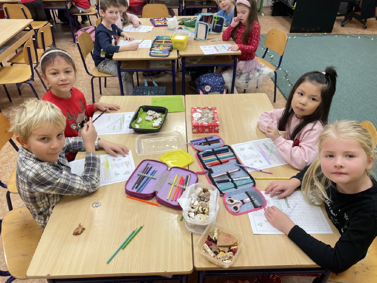 Advent v I. B byl plný zážitků, tvoření i nových znalostí. Navštívili jsme Hrádek, kde si děti vyrobily vánoční ozdobu a dozvěděly se, jak se slavily Vánoce dříve. Přišli k nám čerti s nadílkou a děti statečně plnily čertí úkoly. Vánoční povídání pro nás připravila kutnohorská knihovna. Kromě zábavy jsme se hodně naučili, známe malá tiskací písmena, počítáme do 7, tvoříme slovní úlohy a pracovali jsme s QR kódy. Poslední školní den jsme si pochutnali na cukroví, podívali se na pohádku, přivítali naše patrony a rozdali si dárky. Všem přejeme krásné Vánoce a do nového roku hlavně hodně zdraví! Mgr.Martina Výborná