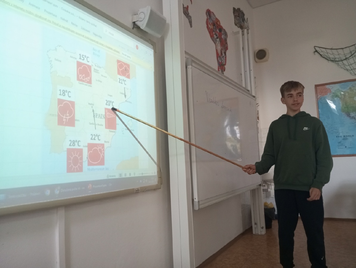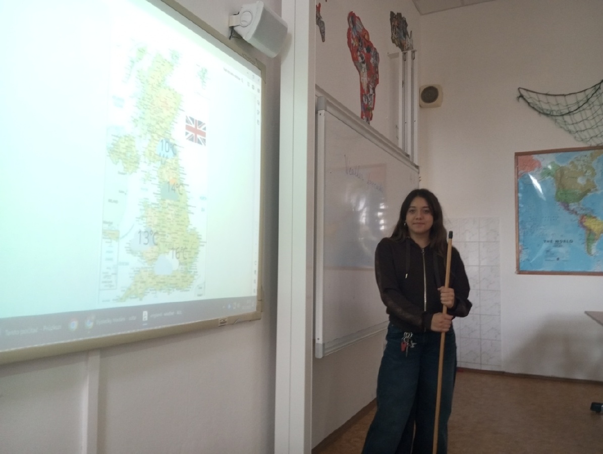V hodinách angličtiny si žáci 8. tříd vyzkoušeli netradiční, ale zábavný výstup – stali se moderátory počasí. Připravili si vlastní předpověď počasí, sami si zvolili zemi i datum, ke kterému se jejich předpověď vztahovala, a za pomoci dříve probrané slovní zásoby si vytvořili krátký text, který poté prezentovali. Tato aktivita sloužila nejen k procvičení slovní zásoby na téma počasí, ale zároveň rozvíjela mluvní dovednosti, prezentační schopnosti a sebevědomí při vystupování před ostatními – to vše v angličtině. Někteří žáci pojali úkol velmi kreativně a připravili celé scénky, jiní naopak překonávali svou ostýchavost při mluvením před spolužáky. Podobné výzvy pomáhají žákům nejen rozvíjet jazyk ale i odvahu promluvit. Zároveň dělají výuku angličtiny pestřejší a přibližují ji skutečným situacím ze života. Mgr. Hana Votavová