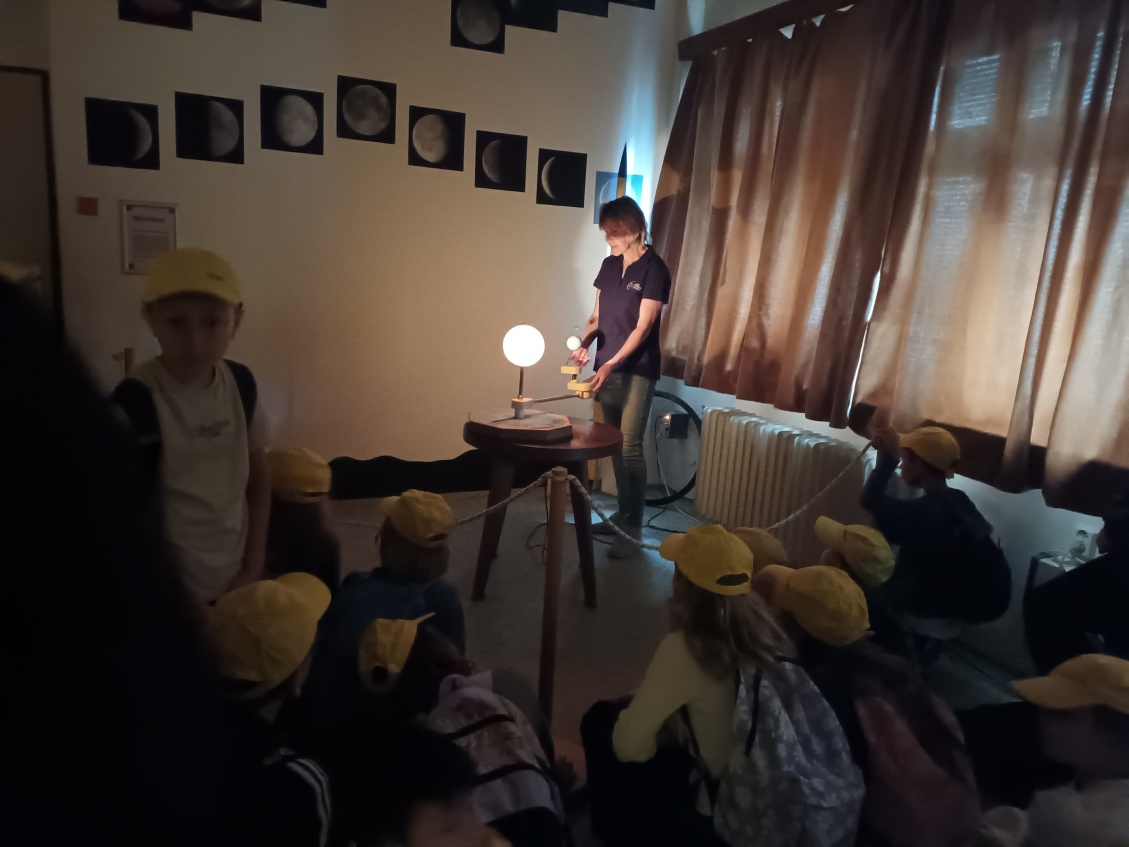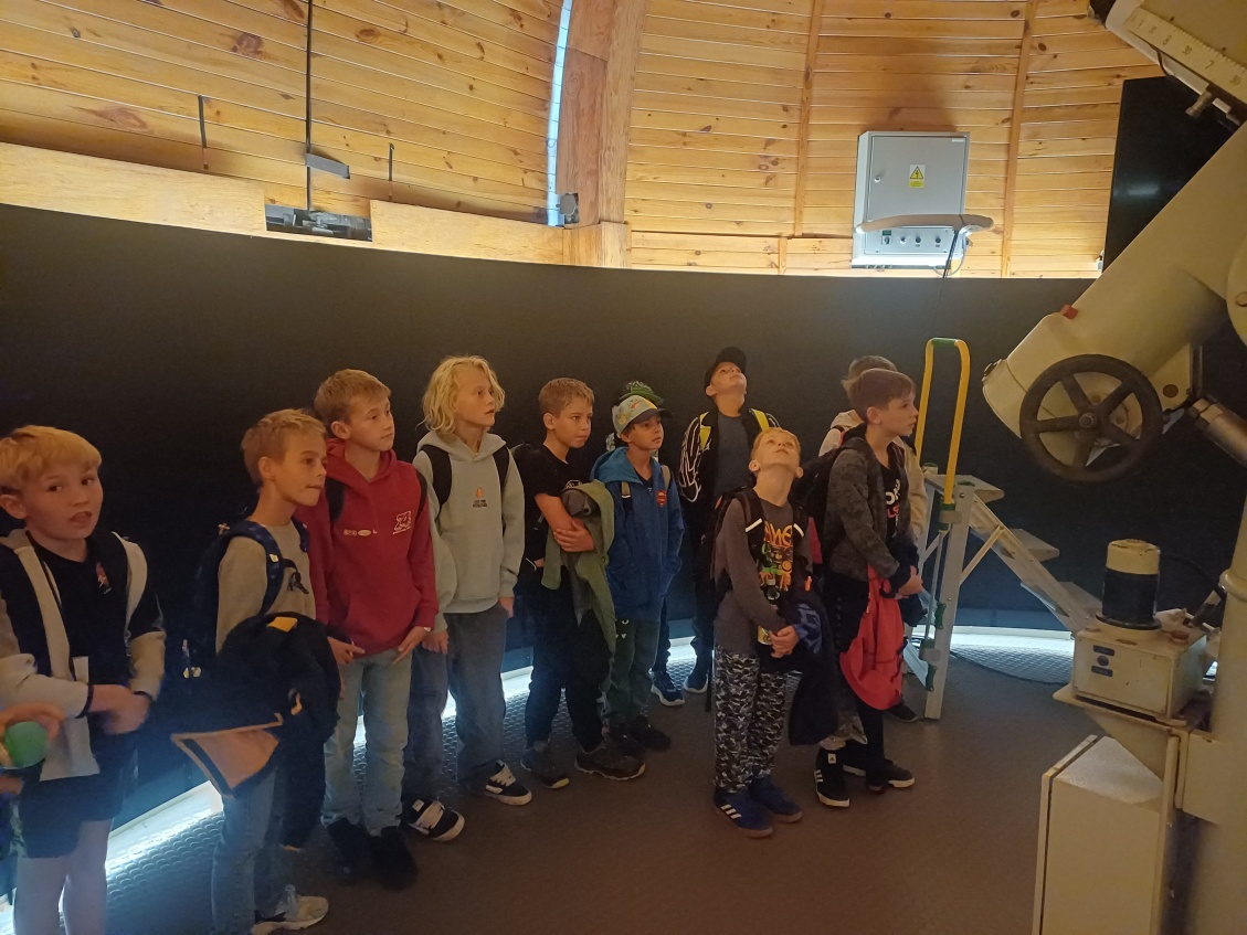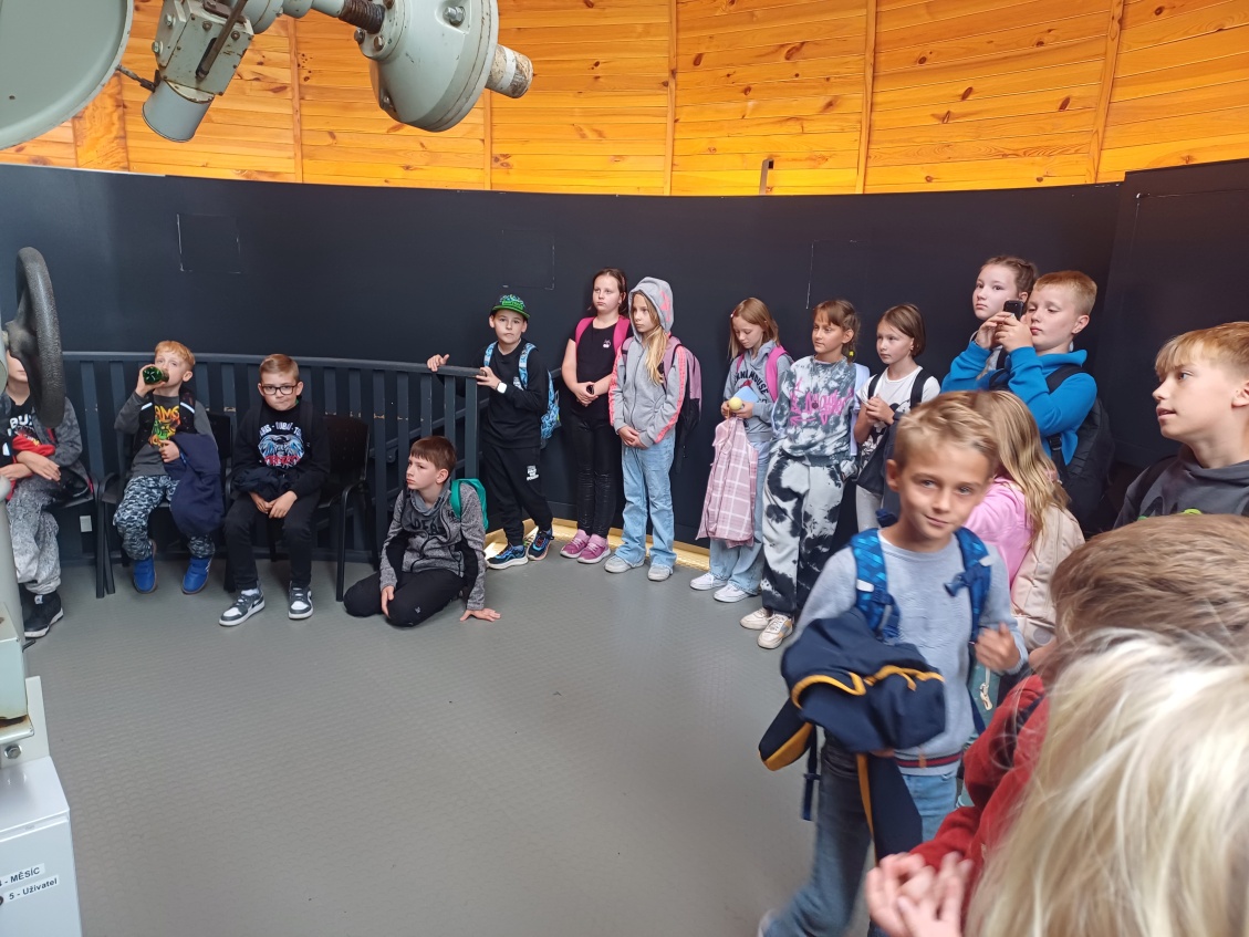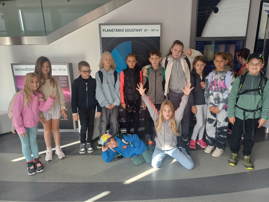 Děti ze 4. ročníku navštívily Planetárium v Hradci Králové, kde se zúčastnily programu zaměřeného na Slunce, Zemi, planety a jejich měsíce, střídání dne a noci, roční období a další fascinující astronomické jevy. V rámci programu žáci získali základní znalosti o pozorování oblohy a virtuálně se podívali na Sluneční soustavu. Dále si prohlédli dalekohledy a při příznivém počasí pozorovali Slunce a sluneční skvrny. Pořad byl součástí výuky přírodovědy, konkrétně vzdělávací oblasti Člověk a jeho svět. Děti se tak seznámily s tématy, které souvisejí s jejich učivem o vesmíru a přírodních jevech.