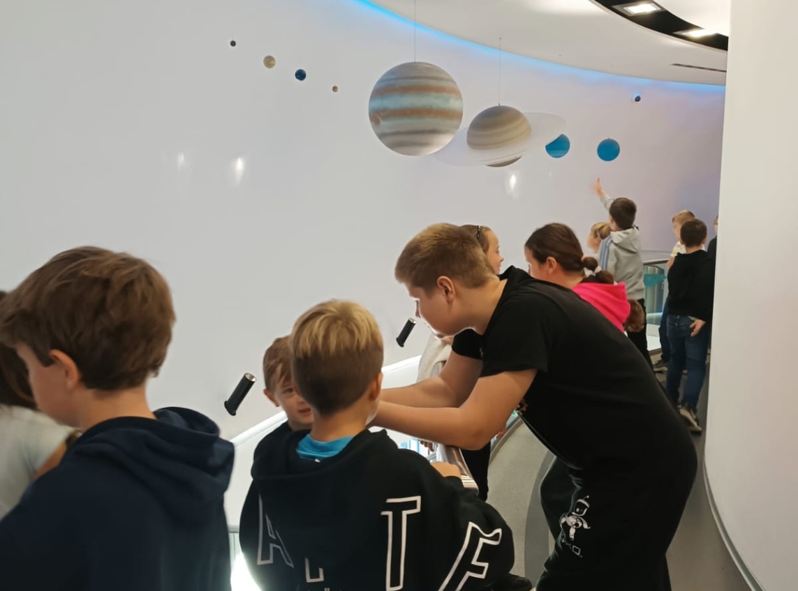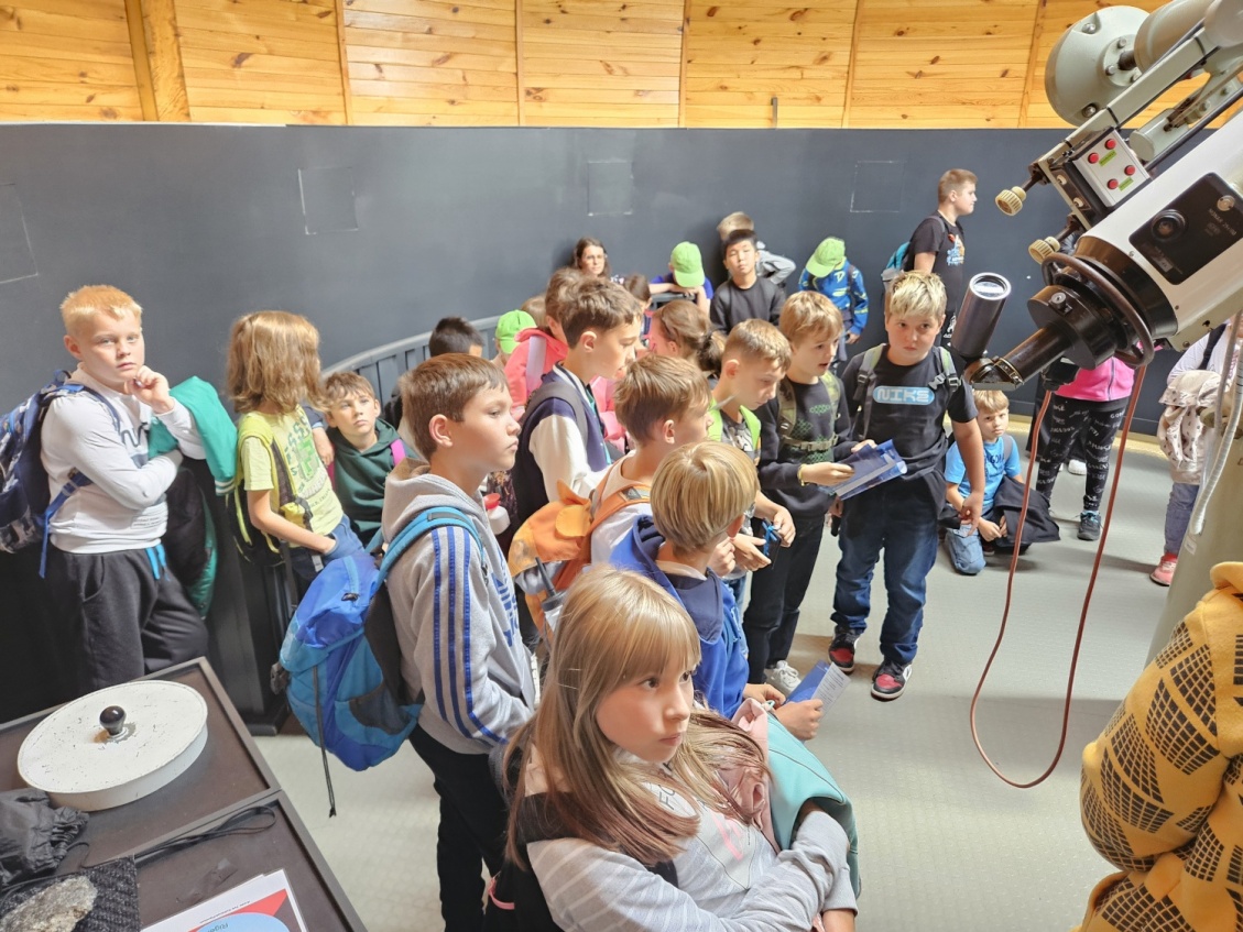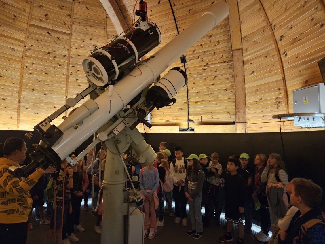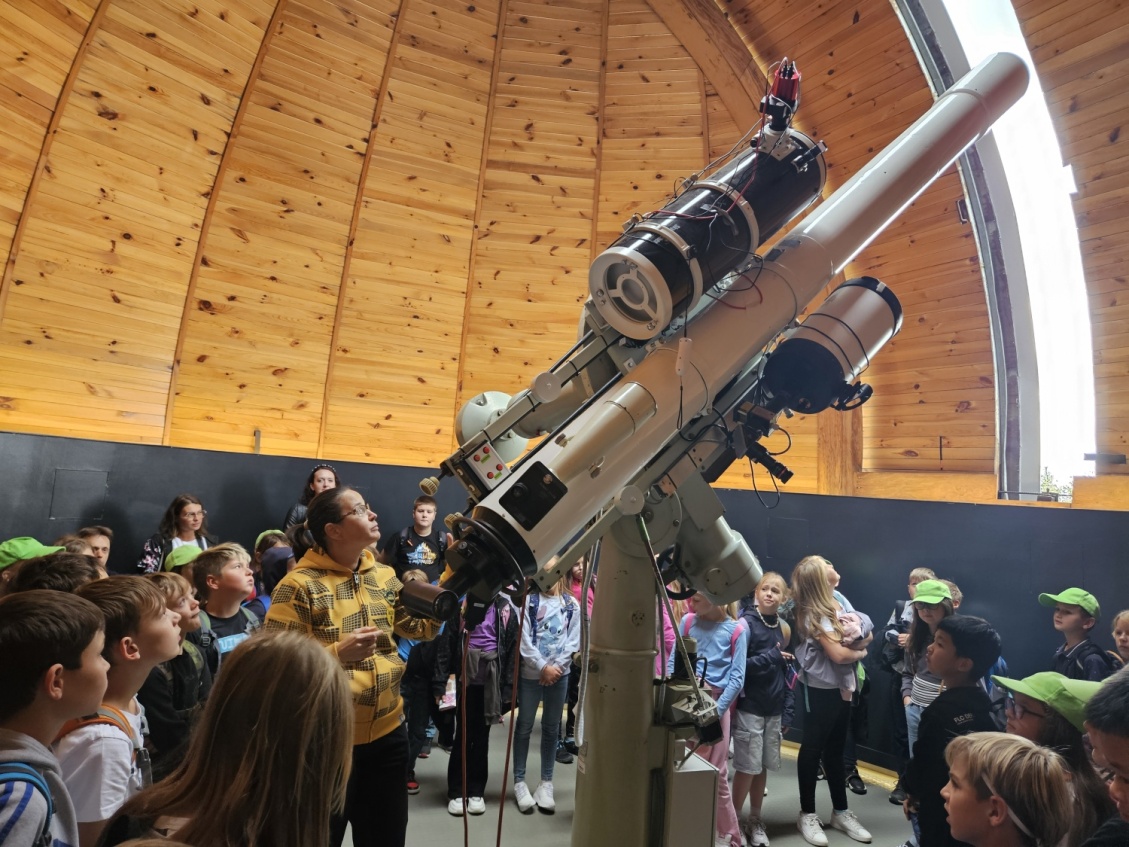 Děti ze 4. ročníku navštívily Planetárium v Hradci Králové, kde se zúčastnily programu zaměřeného na Slunce, Zemi, planety a jejich měsíce, střídání dne a noci, roční období a další fascinující astronomické jevy. V rámci programu žáci získali základní znalosti o pozorování oblohy a virtuálně se podívali na Sluneční soustavu. Dále si prohlédli dalekohledy a při příznivém počasí pozorovali Slunce a sluneční skvrny. Pořad byl součástí výuky přírodovědy, konkrétně vzdělávací oblasti Člověk a jeho svět. Děti se tak seznámily s tématy, které souvisejí s jejich učivem o vesmíru a přírodních jevech.